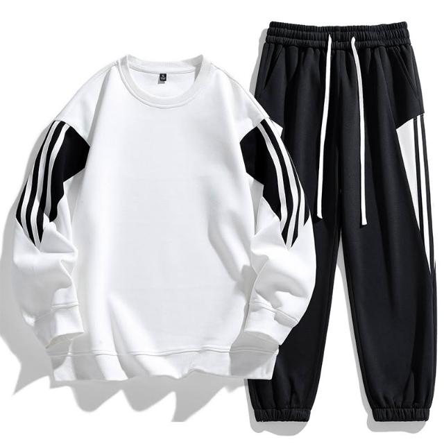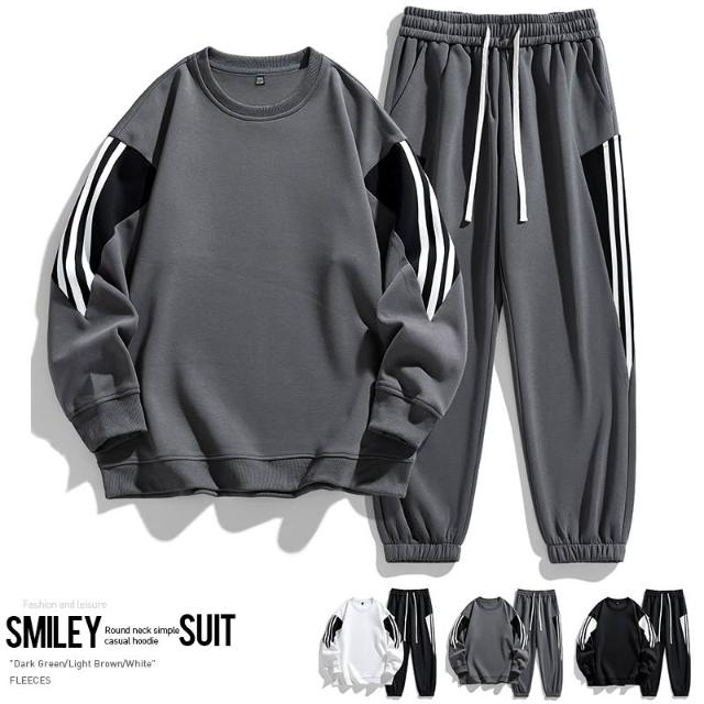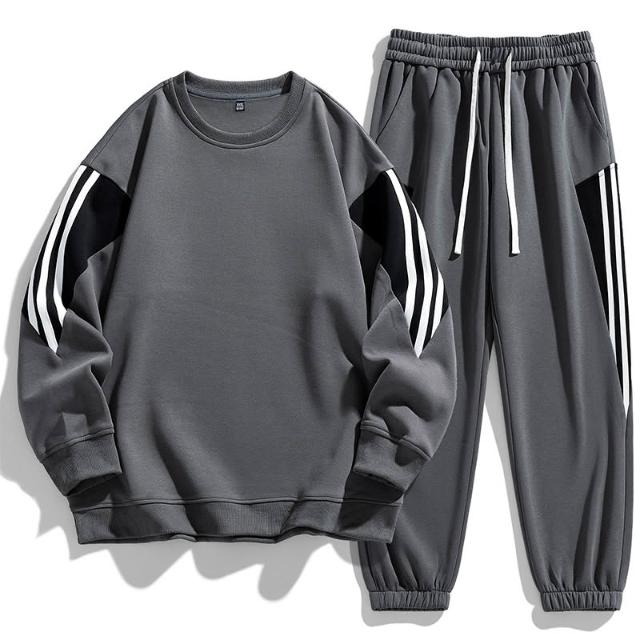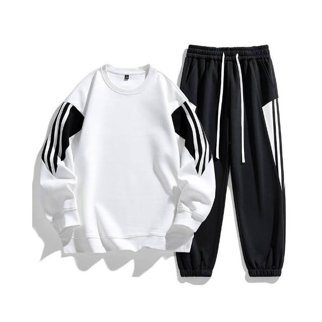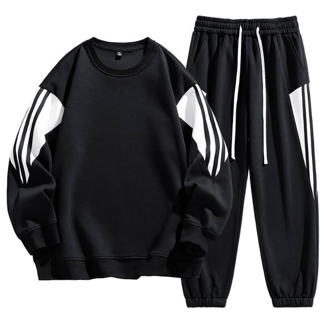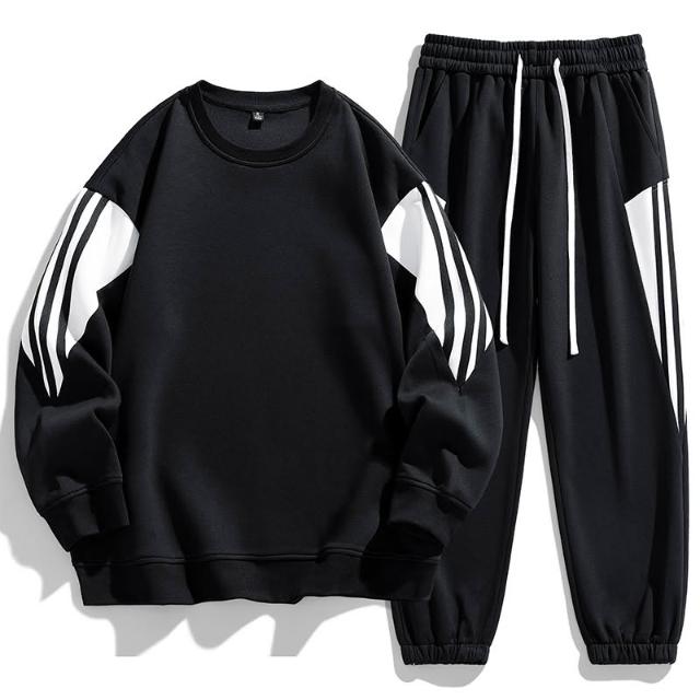 衛衣男士休閑運動套裝潮牌新款運動服男裝秋冬條紋寬鬆男生外套秋裝