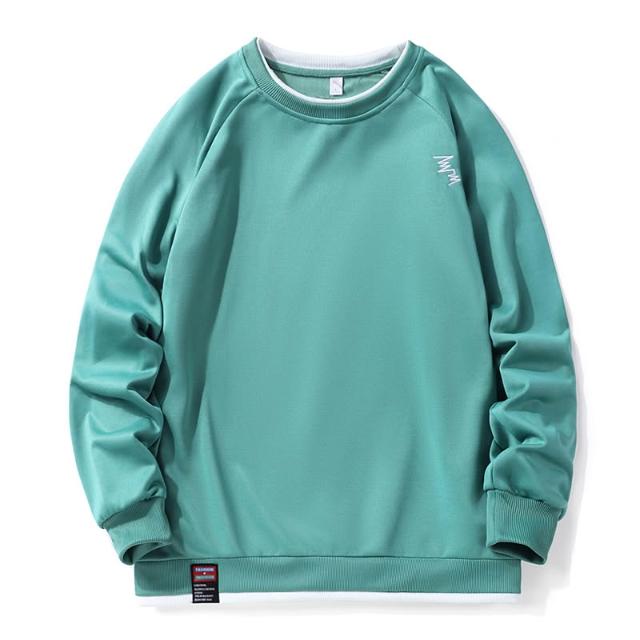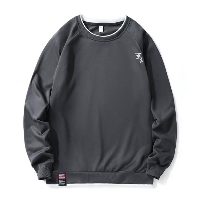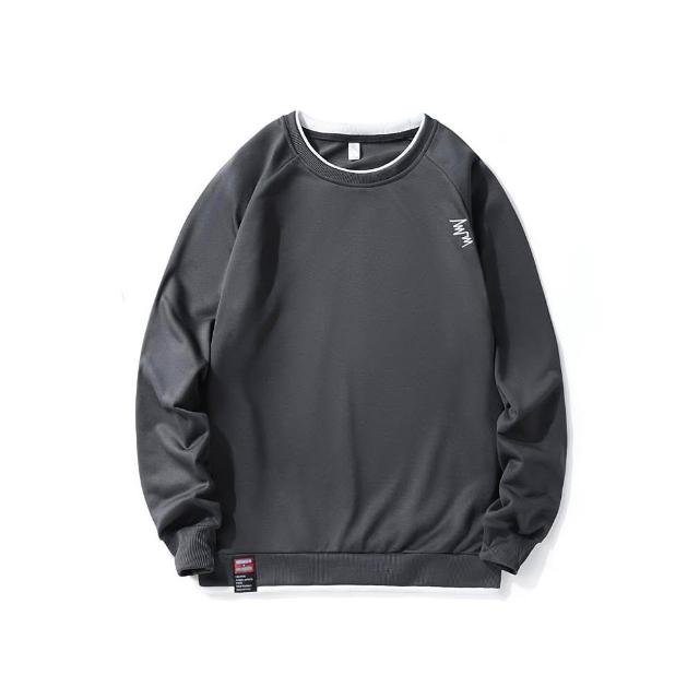 刺繡圓領長袖t恤男士衛衣春秋季新款黃色假兩件潮牌夏季薄款打底衫