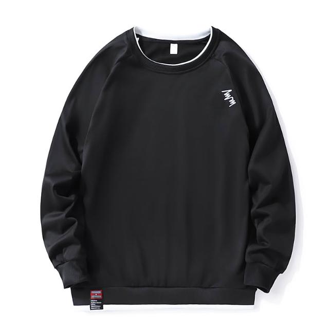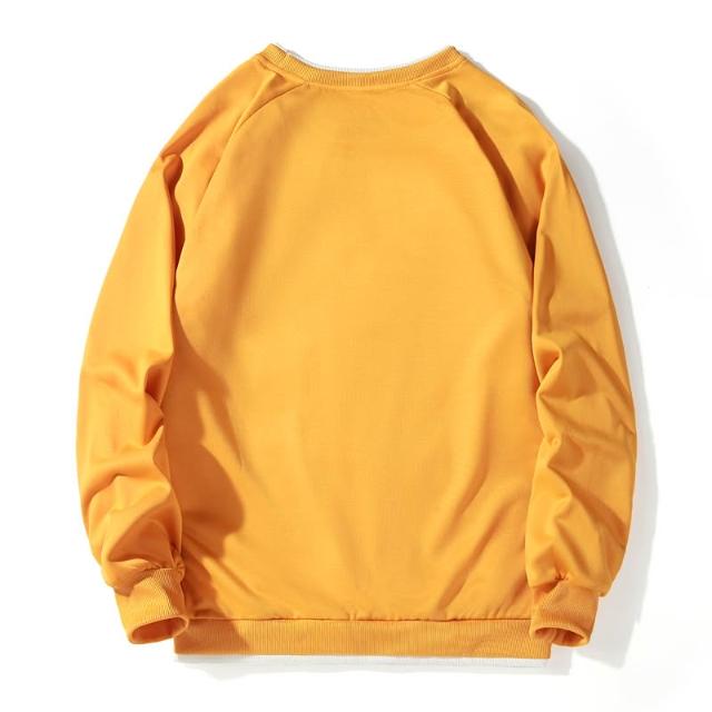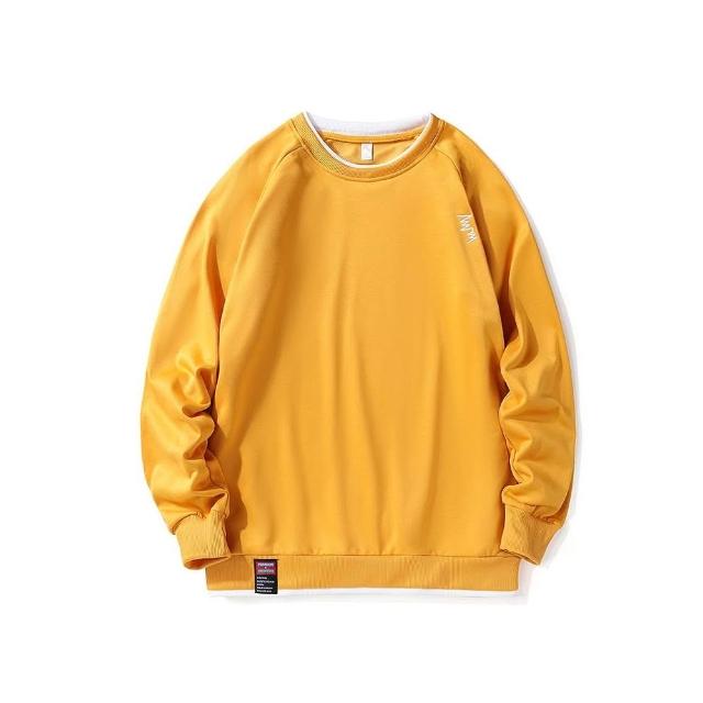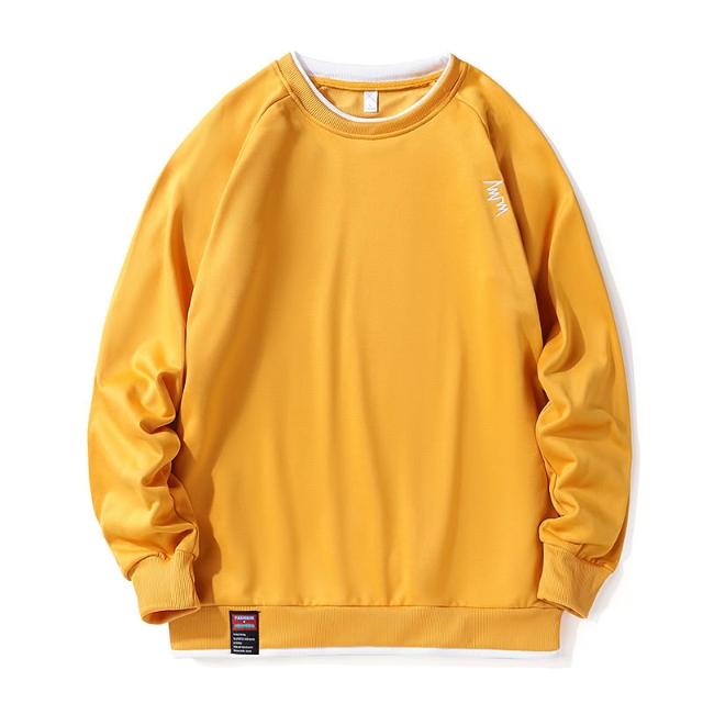 刺繡圓領長袖t恤男士衛衣春秋季新款黃色假兩件潮牌夏季薄款打底衫