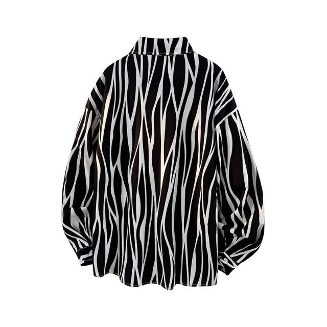 斑馬紋襯衫男薄款黑白條紋長袖襯衫秋季帥氣潮牌寬鬆大碼上衣外套學院風襯衣外套