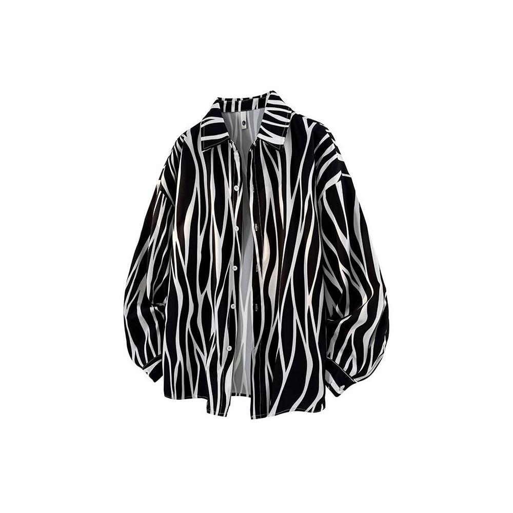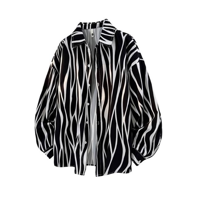斑馬紋襯衫男薄款黑白條紋長袖襯衫秋季帥氣潮牌寬鬆大碼上衣外套學院風襯衣外套