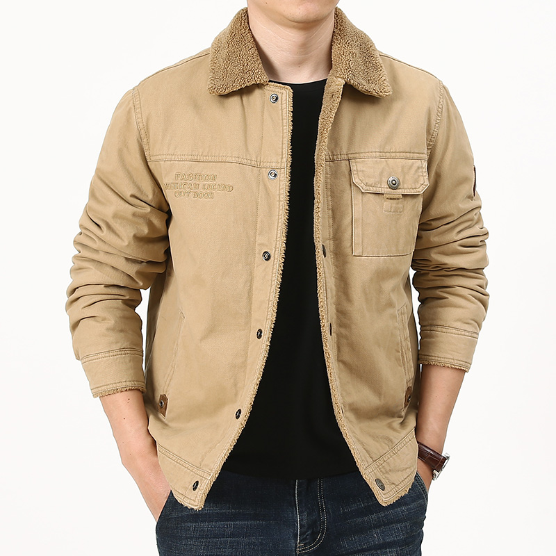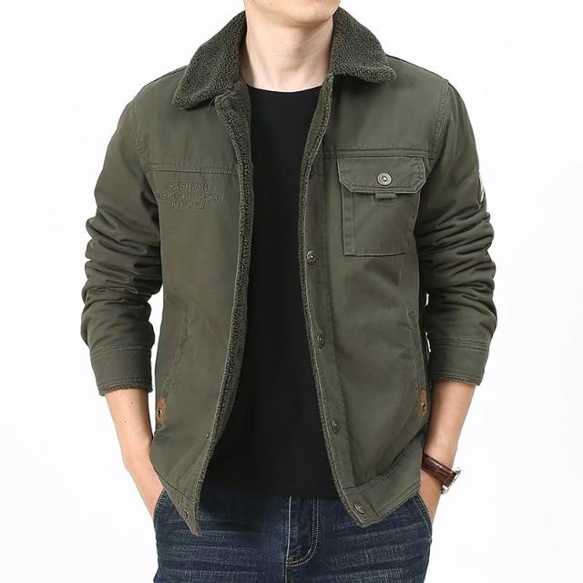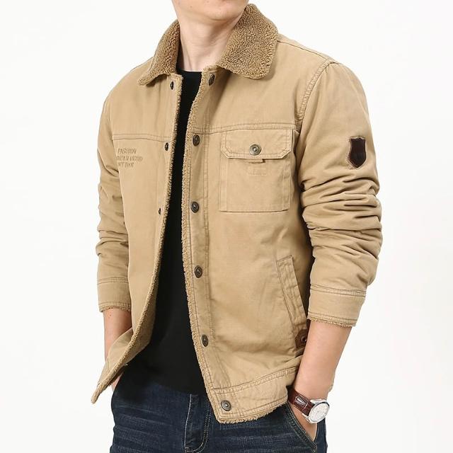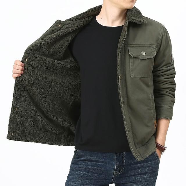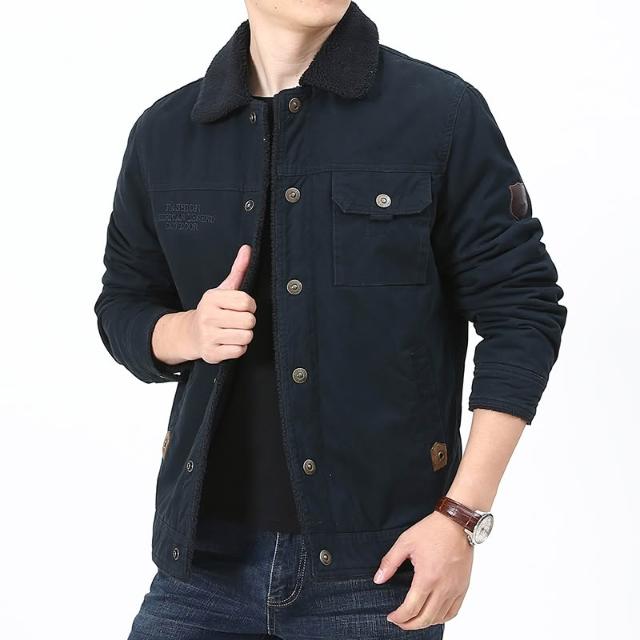純棉加絨夾克男加厚休閑保暖上衣男裝中老年男士秋冬季爸爸裝外套