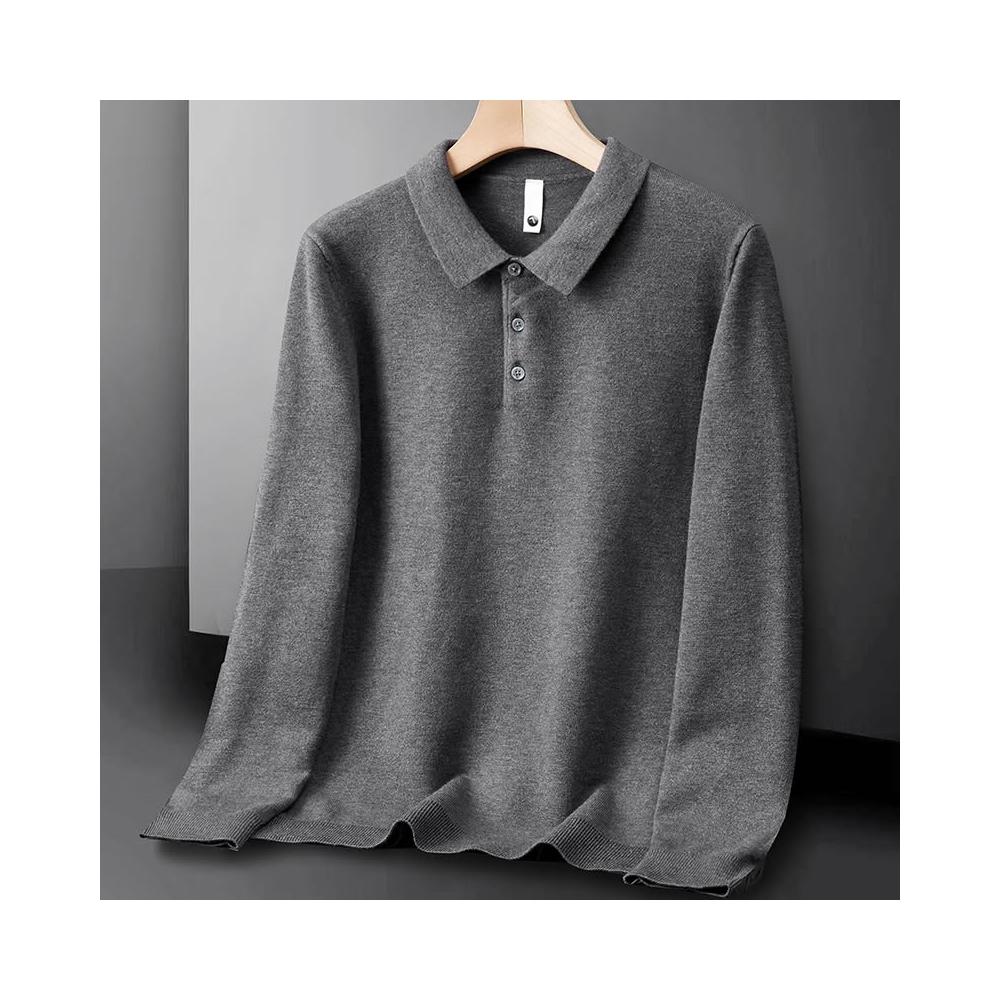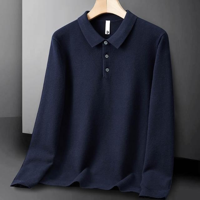 中老年羊毛衫翻領含羊毛針織衫中年爸爸裝商務男士純色休閒秋毛衣