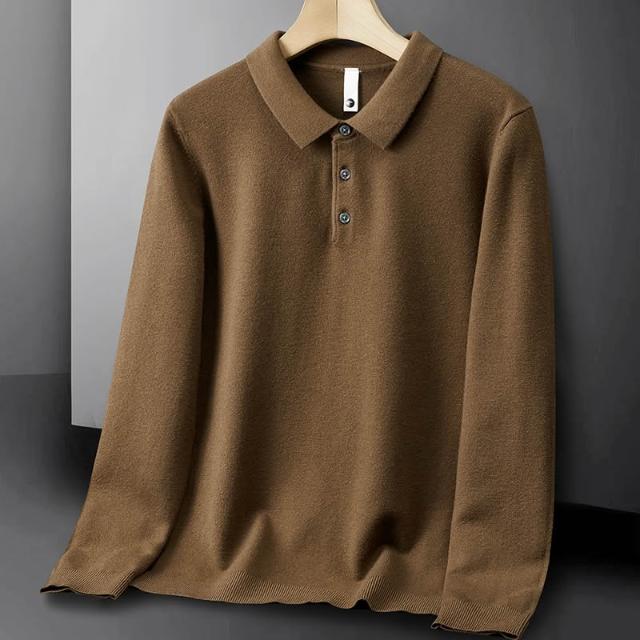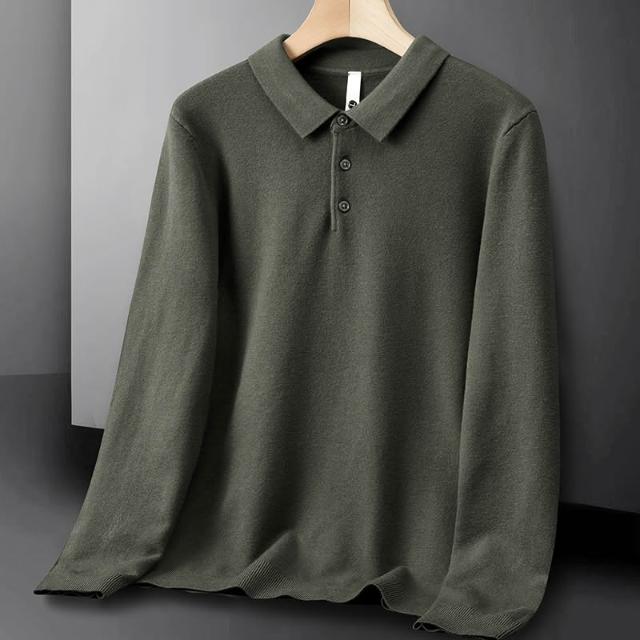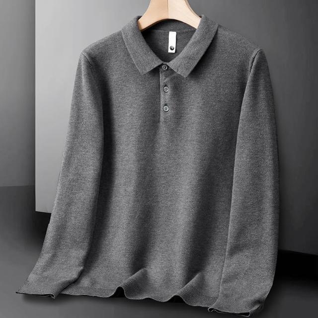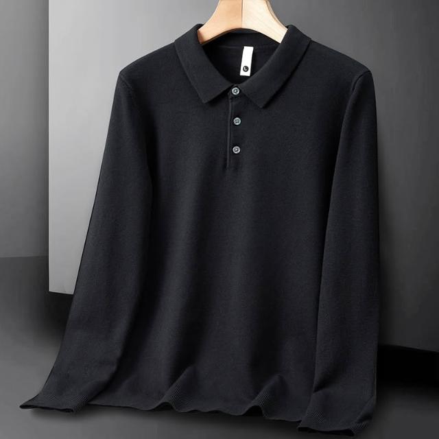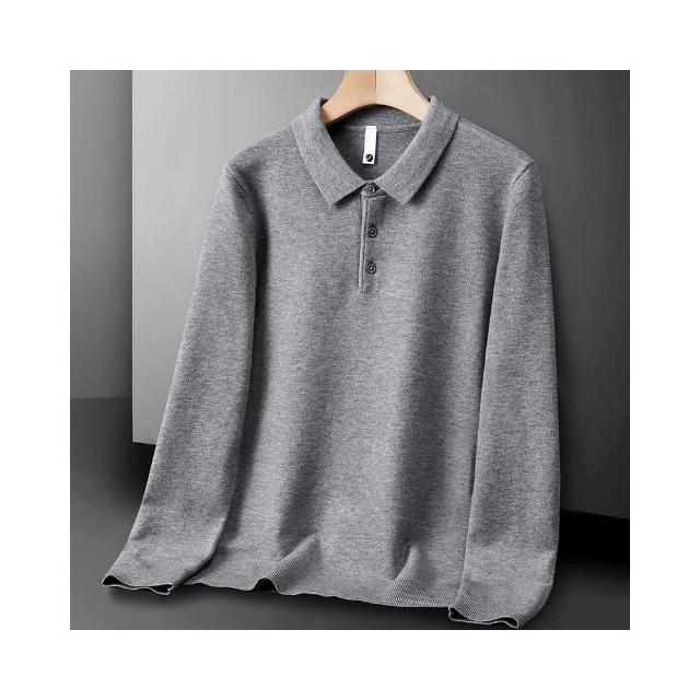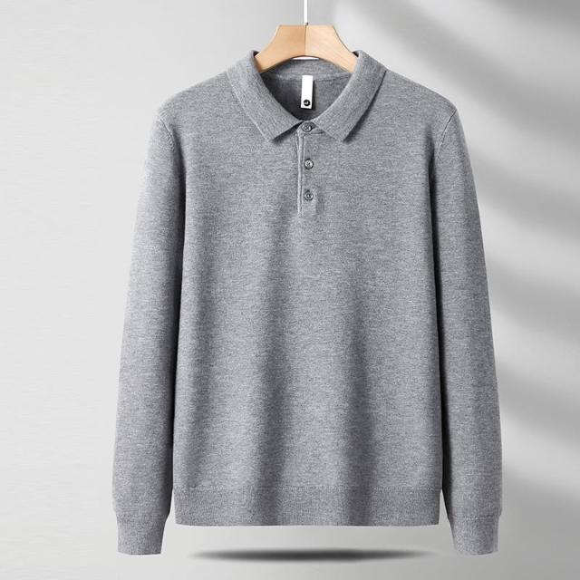中老年羊毛衫翻領含羊毛針織衫中年爸爸裝商務男士純色休閒秋毛衣