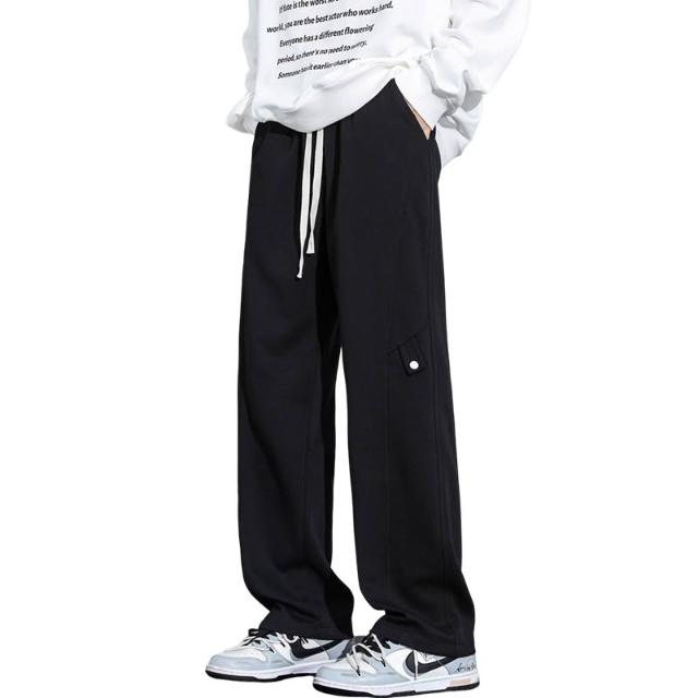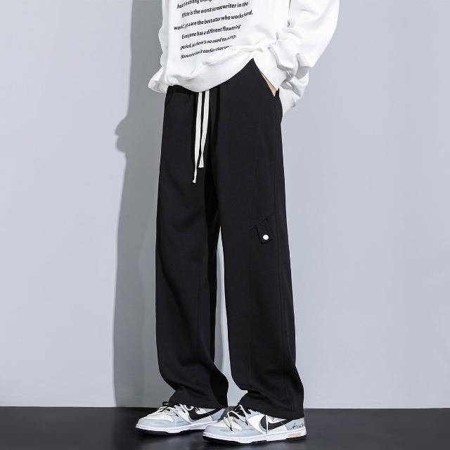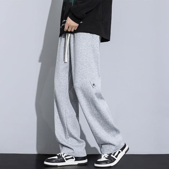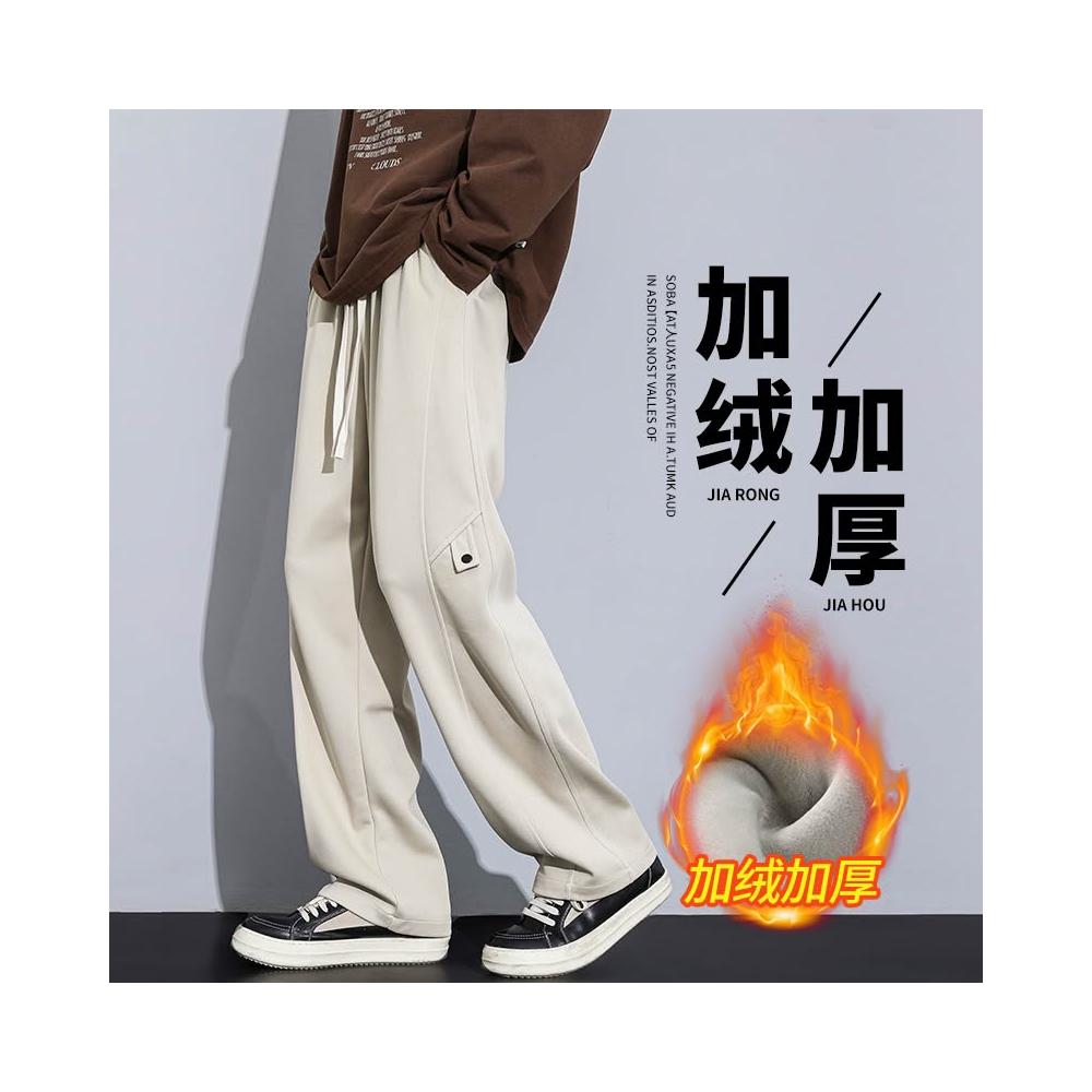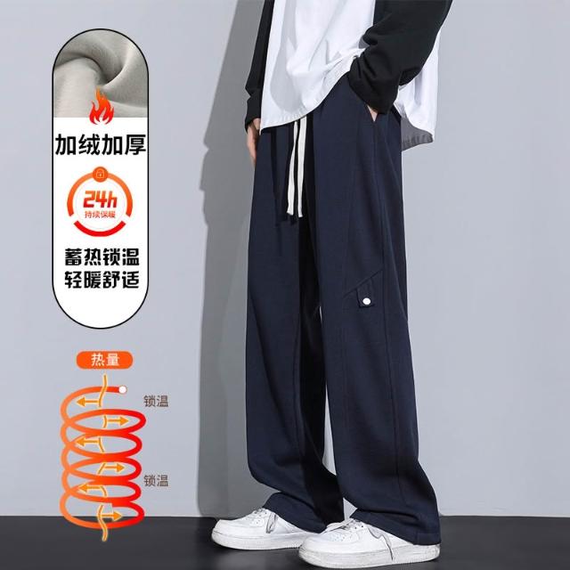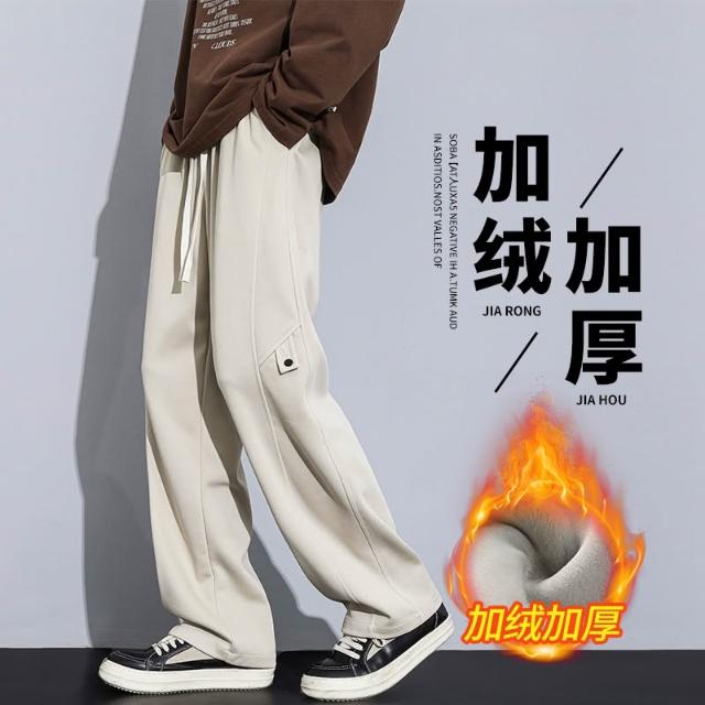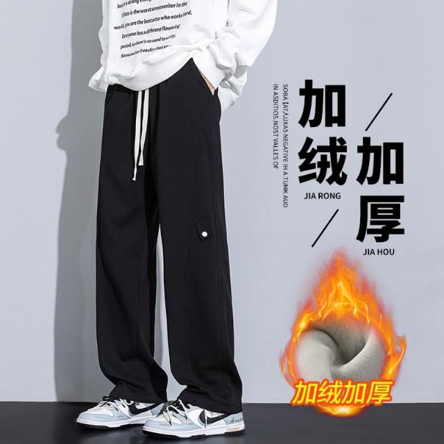 秋冬加絨直筒長褲新款棉質男士休閑舒適褲潮流寬鬆保暖男裝褲子小眾高級感