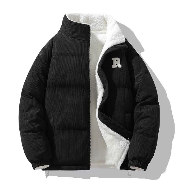 兩面穿立領棉衣男秋冬季雙面穿加絨外套加厚棉服保暖外套學生加厚夾克