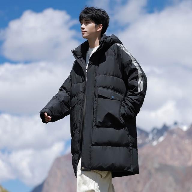 羽絨服條紋高品質冬季新款原創高品質90%白鴨絨長款外套男女同款舒適中長款羽絨外套