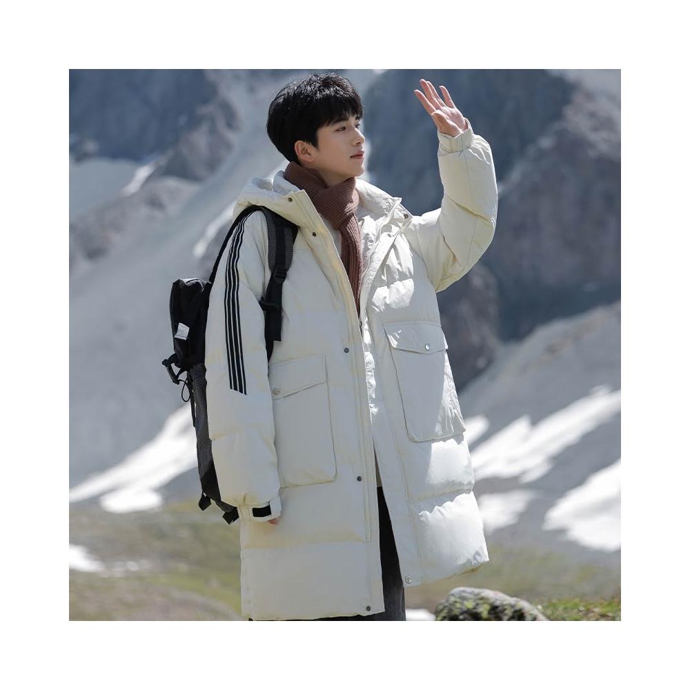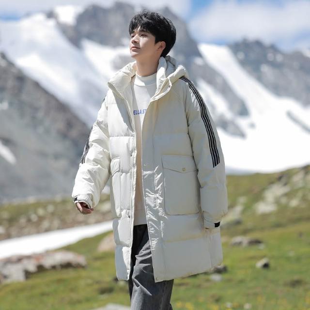 羽絨服條紋高品質冬季新款原創高品質90%白鴨絨長款外套男女同款舒適中長款羽絨外套