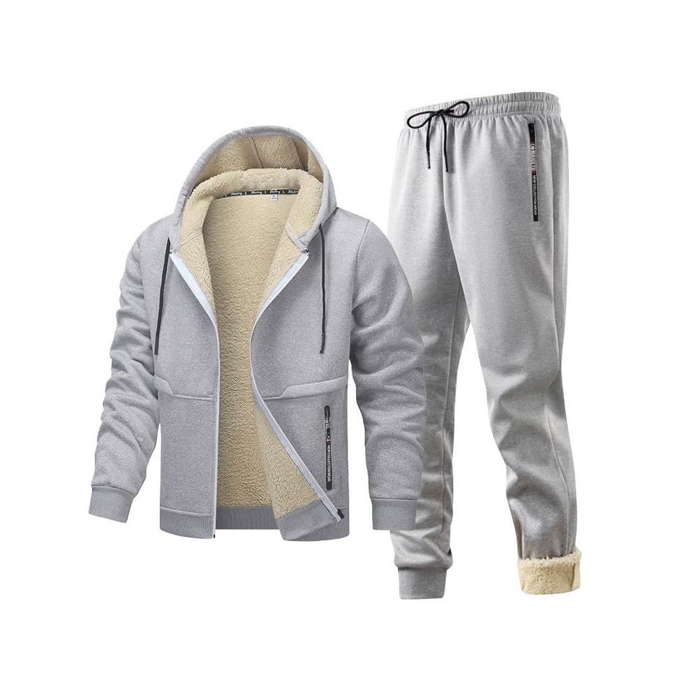 羊羔絨套裝男連帽外套男加絨加厚冬季運動套裝男開衫兩件套男衛衣男衛褲男休閑褲男