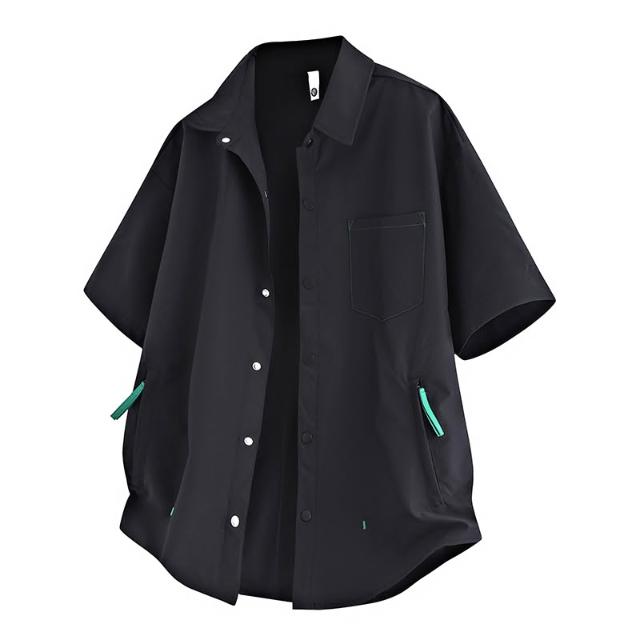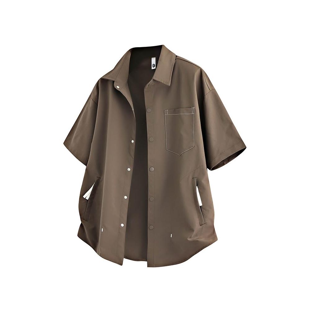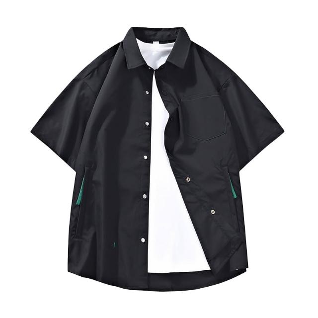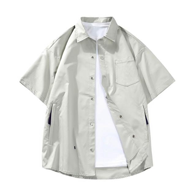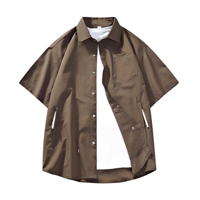 純色短袖襯衫夏季經典男士翻領上衣青少年休閒寬鬆透氣上衣簡約時尚外套