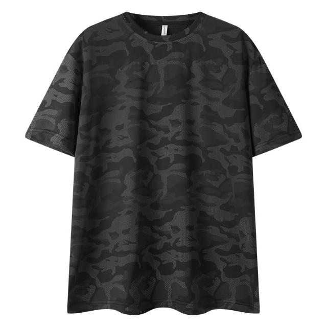 迷彩冰絲短袖夏季男超薄款大碼T恤中青年速干透氣寬鬆運動上衣休閒舒適