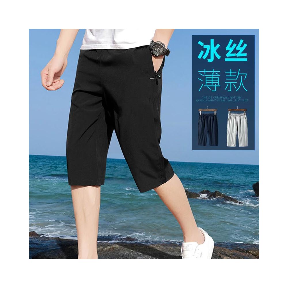 夏季冰絲七分褲男薄款透氣速干短褲寬鬆拉鏈口袋潮流大碼休閒運動褲