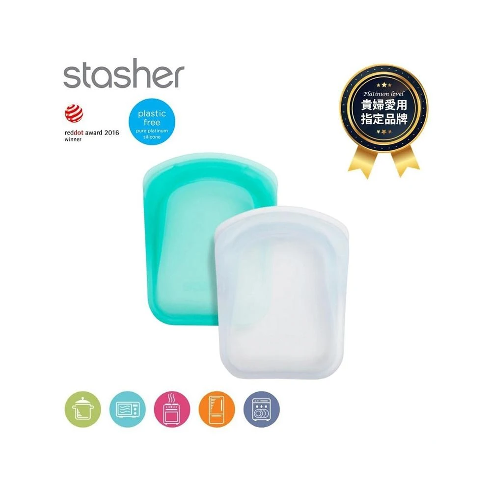 美國Stasher✨恆隆行口袋矽膠密封袋精美矽膠2入組✨雲霧白 湖水藍 食物 保鮮 環保 郊遊 露營 野餐 辦公居家