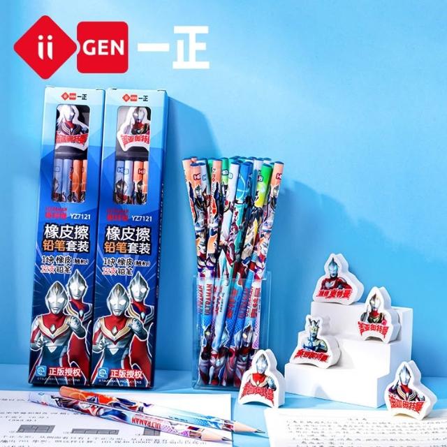 ✨台灣現貨🚀一正文具 奧特曼文具套組 禮盒 HB鉛筆 橡皮擦 奧特英雄/怪獸 💚勳章 三角鉛筆💙FEEOWN