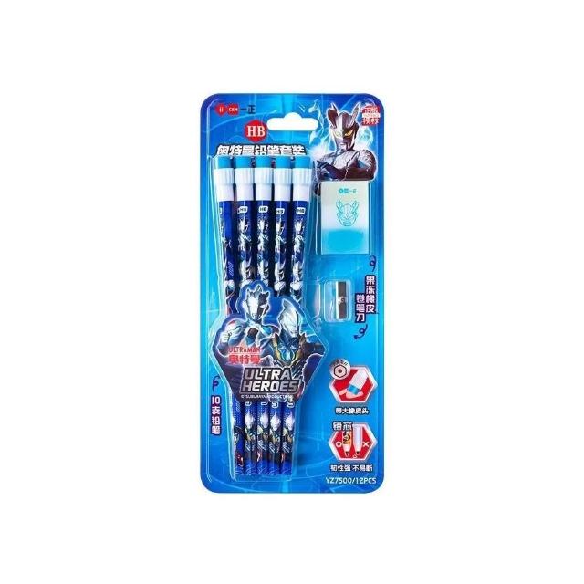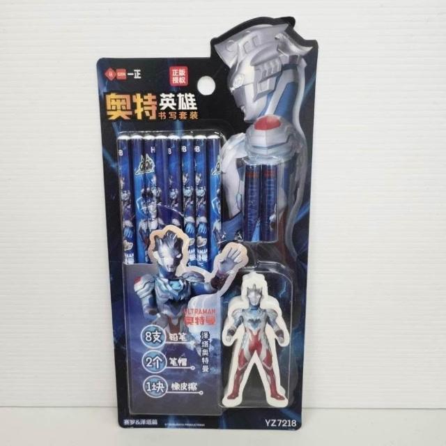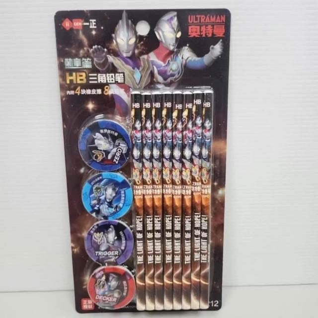 ✨台灣現貨🚀一正文具 奧特曼文具套組 禮盒 HB鉛筆 橡皮擦 奧特英雄/怪獸 💚勳章 三角鉛筆💙FEEOWN
