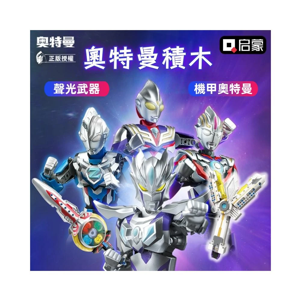 ✨台灣現貨🚀啟蒙正版 奧特曼英雄 聲光武器積木機甲奧特曼 經典多重玩法 自由組裝 💙 益智玩具 ✽FEEOWN✽
