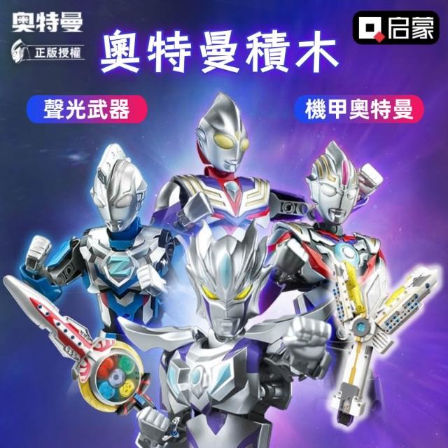 ✨台灣現貨🚀啟蒙正版 奧特曼英雄 聲光武器積木機甲奧特曼 經典多重玩法 自由組裝 💙 益智玩具 ✽FEEOWN✽