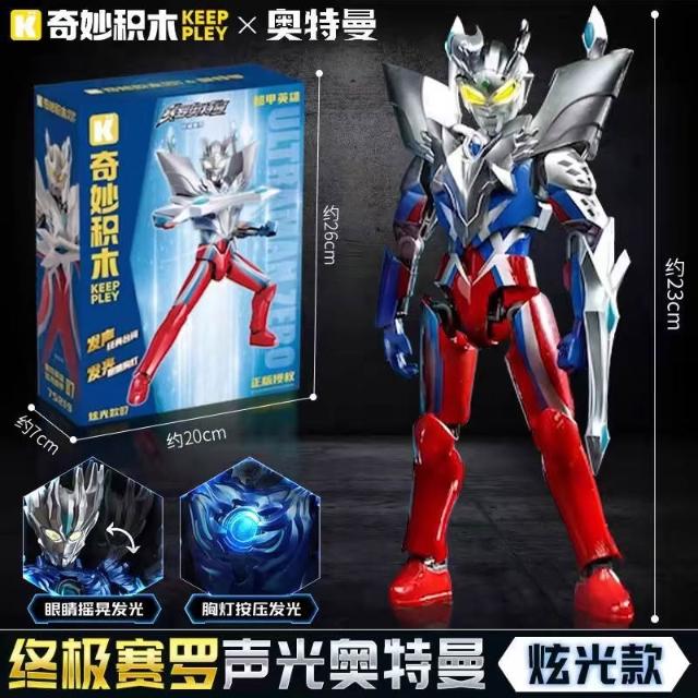 ✨台灣現貨🚀啟蒙正版 奧特曼英雄 聲光武器積木機甲奧特曼 經典多重玩法 自由組裝 💙 益智玩具 ✽FEEOWN✽