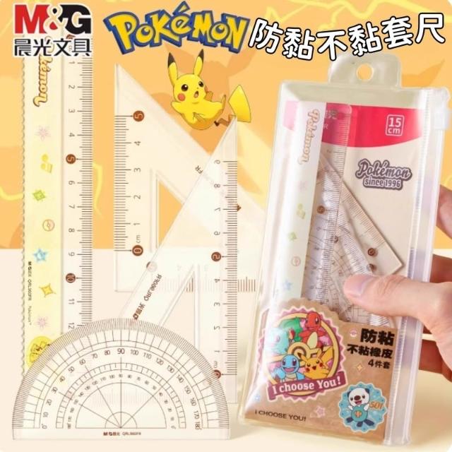 ✨台灣現貨🚀晨光寶可夢四件組套尺📏波浪尺 量角器📐三角尺 刻度清晰 畫重點✍️文具用品 開學必備 學生必備