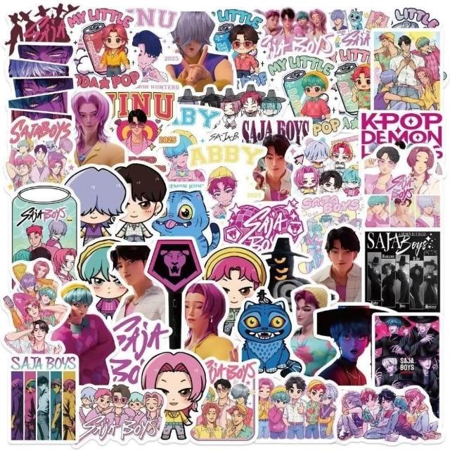 ✨台灣秒發+開發票🚀Kpop獵魔女團 貼紙74入 防水裝飾貼 可重覆黏貼 款式多變 行李箱貼紙 安全帽貼紙 韓風