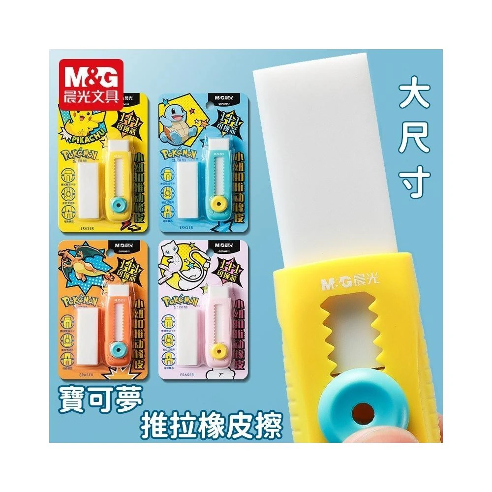 ✨台灣秒發+開發票🚀晨光寶可夢推拉橡皮擦🟡文具/開學用品 學生必備 修正用品 擦拭乾淨 推拉設計 按壓設計 子母款