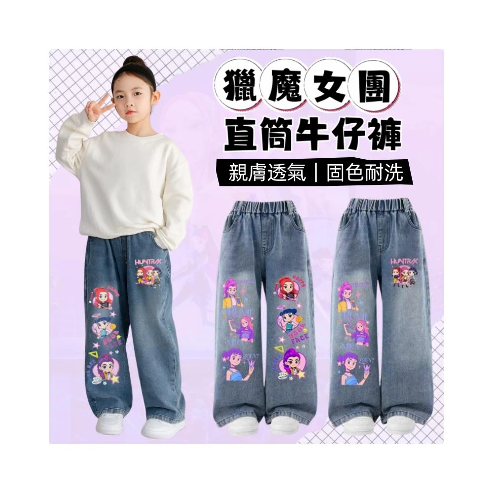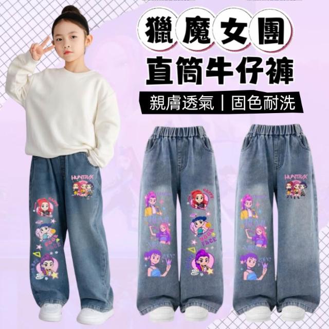 ✨台灣現貨-隔日到貨🚀Kpop韓流獵魔女團 直筒牛仔褲 口袋需自行剪開 中大童牛仔褲 120-150 女童牛仔褲