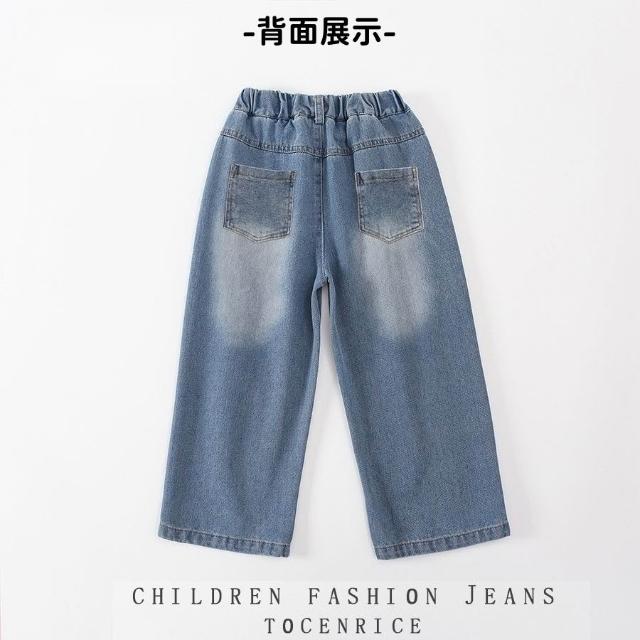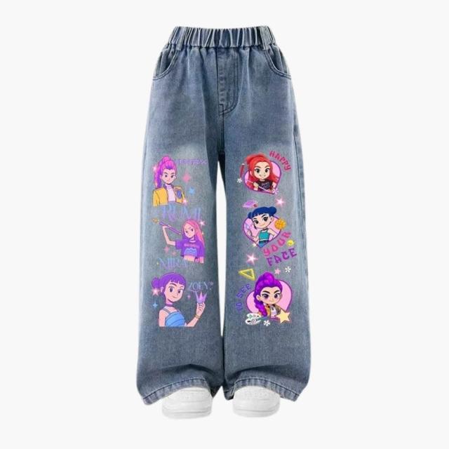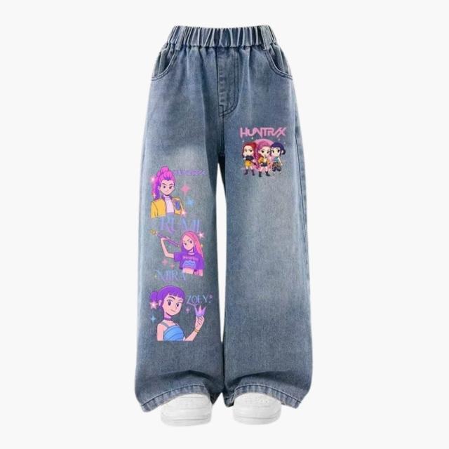 ✨台灣現貨-隔日到貨🚀Kpop韓流獵魔女團 直筒牛仔褲 口袋需自行剪開 中大童牛仔褲 120-150 女童牛仔褲