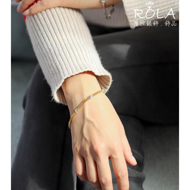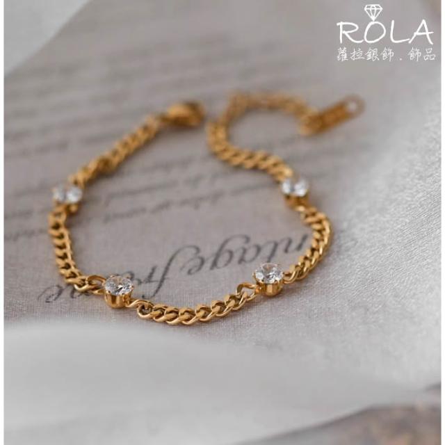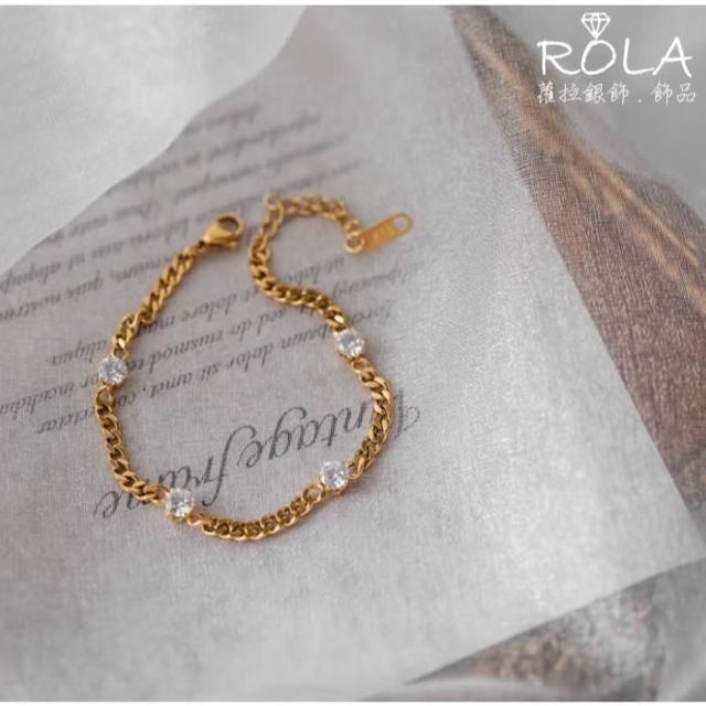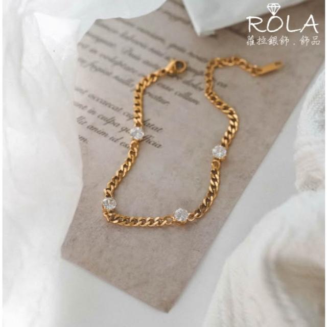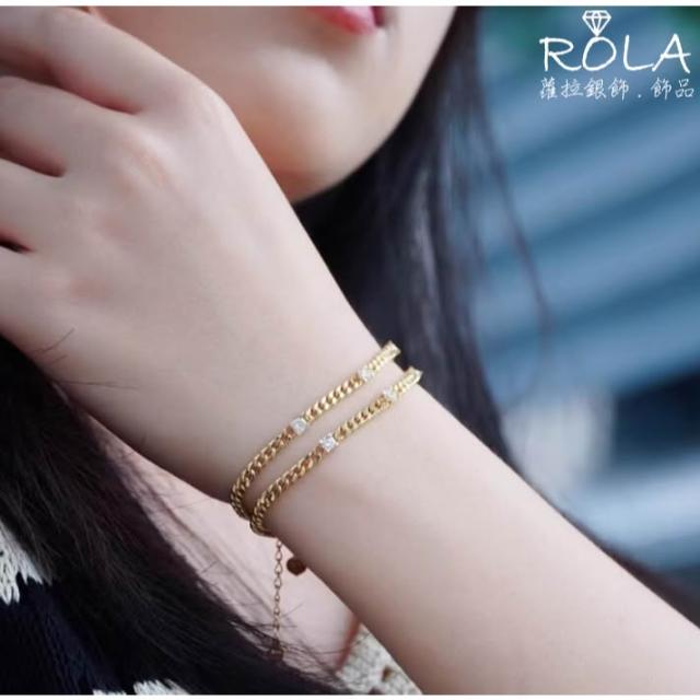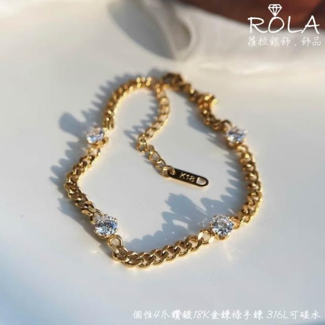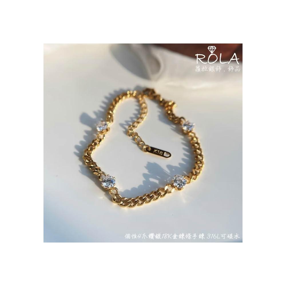 ROLA蘿拉銀飾.飾品 “現貨當天出” 個性4爪鑽鍍18K金鍊條手鍊 316L可碰水 鈦鋼+18K金
