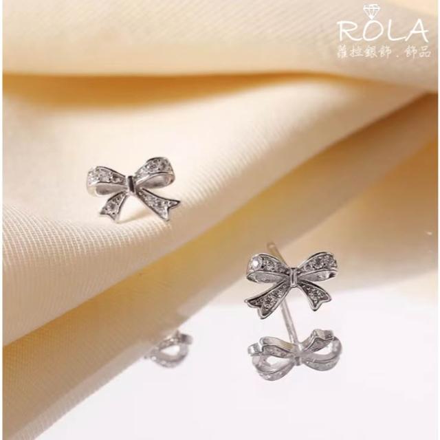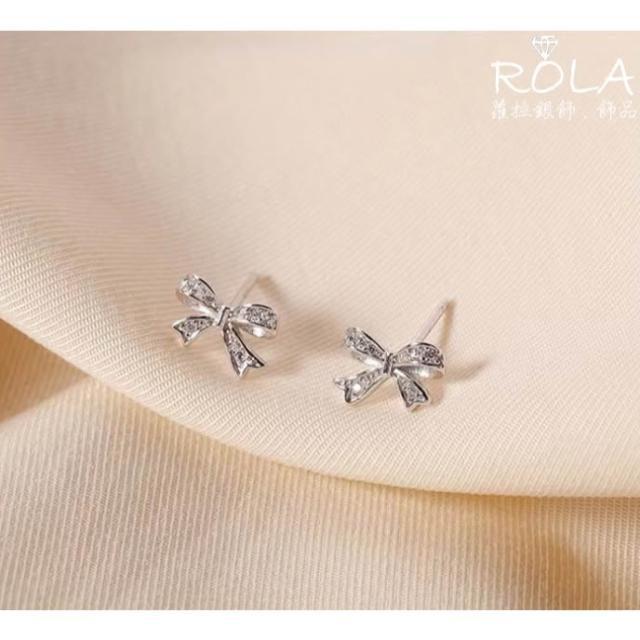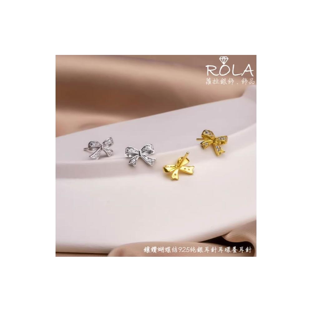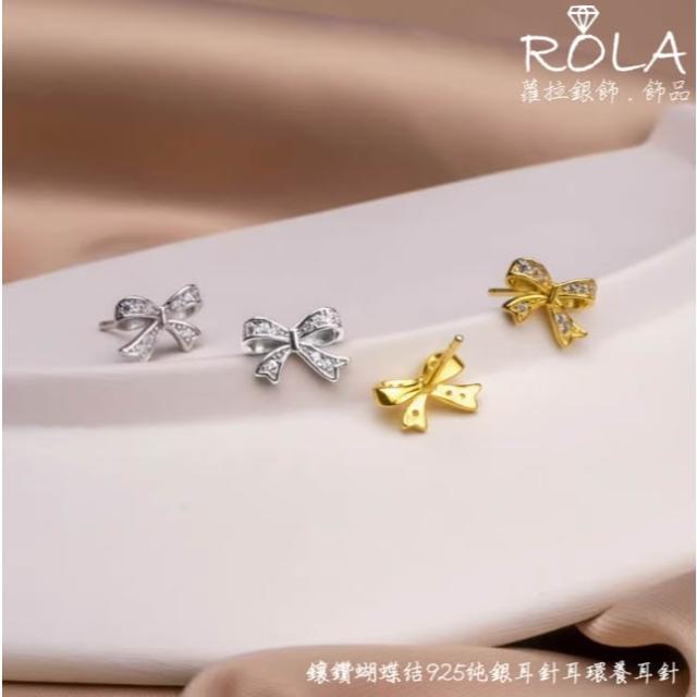 ROLA蘿拉銀飾.飾品 “現貨當天出”/一對價/ 鑲鑽蝴蝶結925純銀耳針耳環養耳針 蝴蝶結