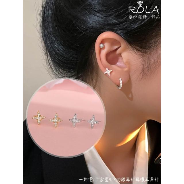 ROLA蘿拉銀飾.飾品 “現貨當天出” //一對價// 鋯石十字星925純銀耳針耳環耳骨針 星星