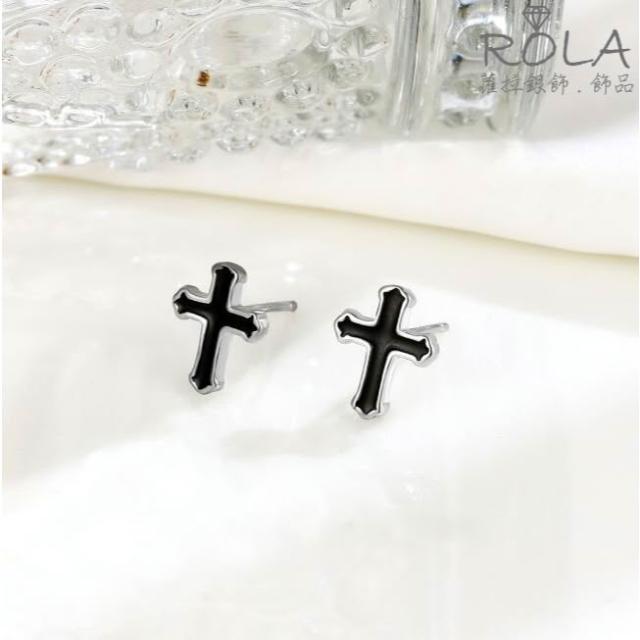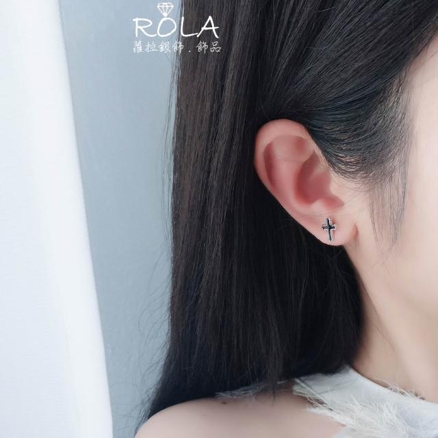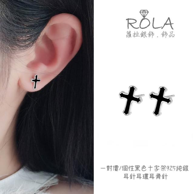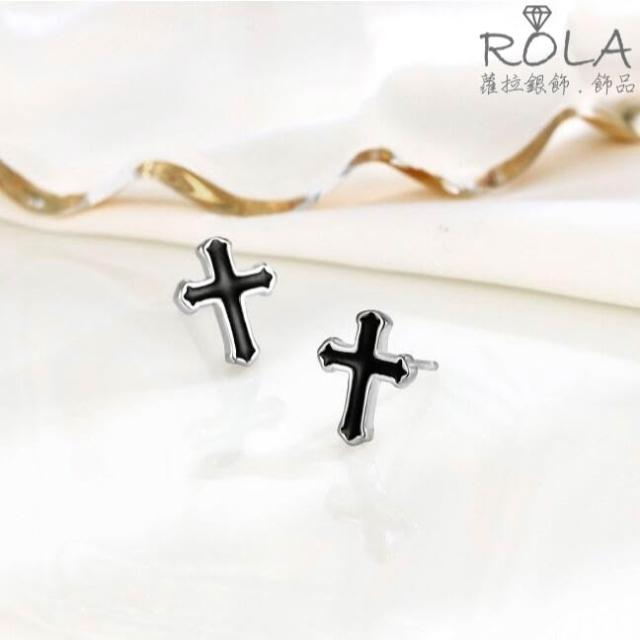ROLA蘿拉銀飾.飾品 “現貨當天出” //一對價// 個性黑色十字架925純銀耳針耳環耳骨針 綜合.