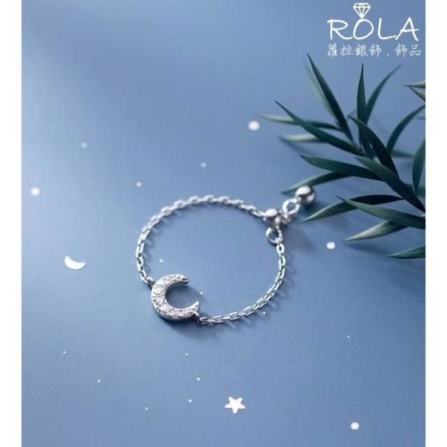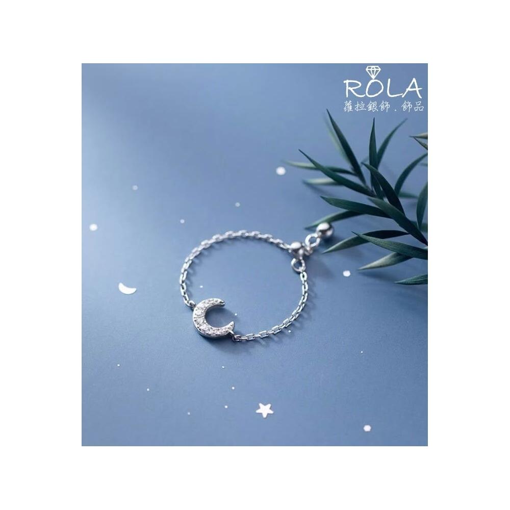ROLA蘿拉銀飾.飾品 “現貨當天出” 水鑽月亮925純銀鏈條式活動 拉繩戒指.