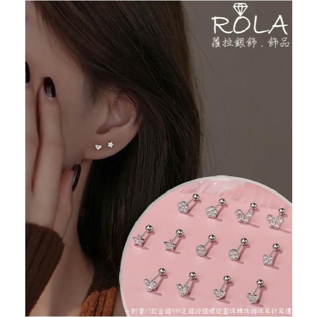 ROLA蘿拉銀飾.飾品 “現貨當天出” //一對價// 7款金銀999足銀純銀螺旋圓珠轉珠鎖珠耳針耳環 鎖珠.