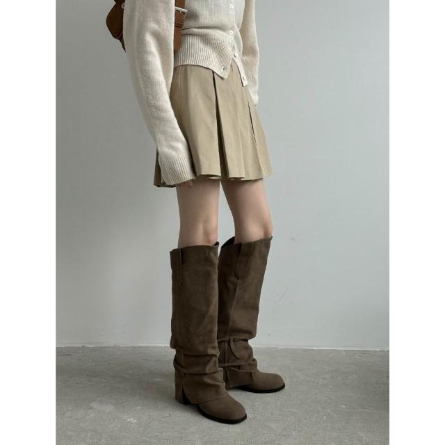 👢磨砂麂皮抓皺褲管靴・黑23.5/咖24現貨 斜口造型長靴・秋冬推薦|正韓 韓國東大門代購・全館免運〃HITOMI〃