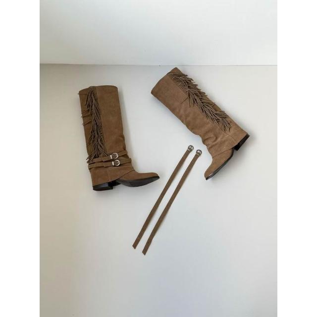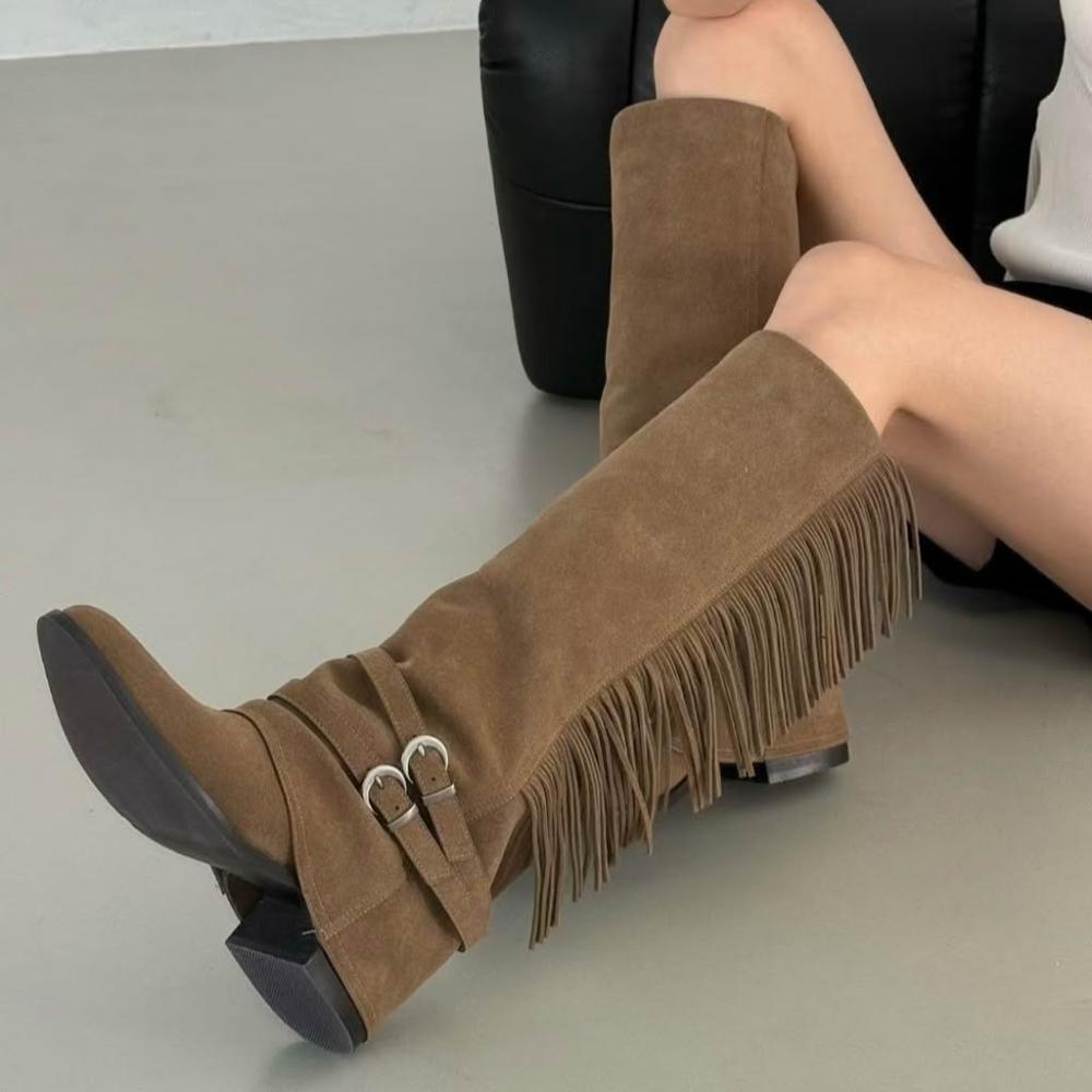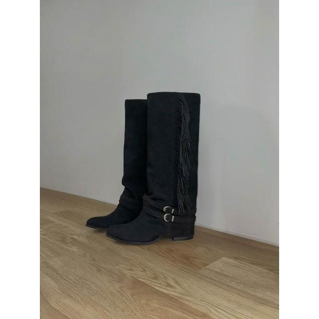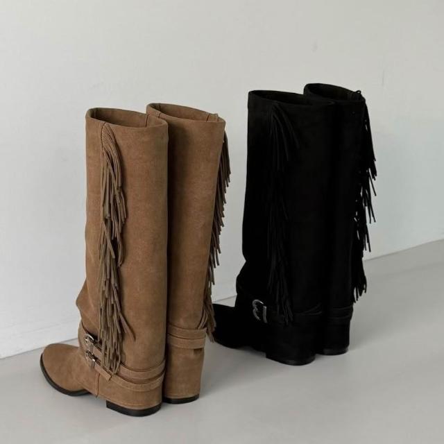 👢真皮麂皮流蘇西部長靴・扣環造型靴款・秋冬推薦|正韓 東大門代購直播推薦款・全館免運〃HITOMI〃