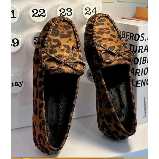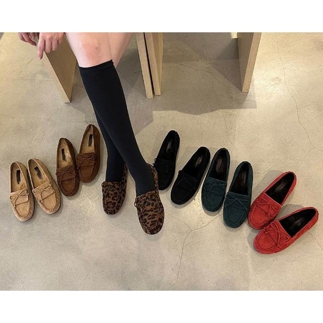 👟6色麂皮蝴蝶結絨毛樂福鞋・豹紋平底大碼鞋款・秋冬推薦|正韓代購直播推薦款・全館免運〃HITOMI〃
