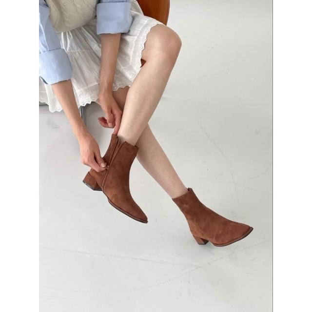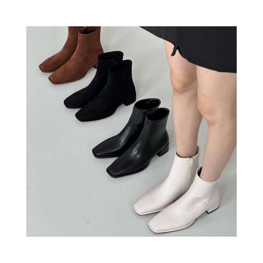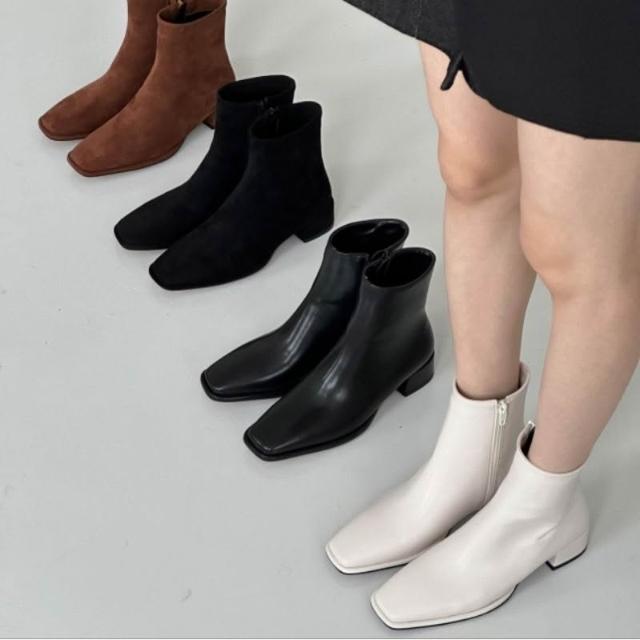 👢4色方頭皮質麂皮低跟短靴・時尚拉鍊短靴・穿搭推薦|快速到貨|韓國代購直播款・免運〃HITOMI〃