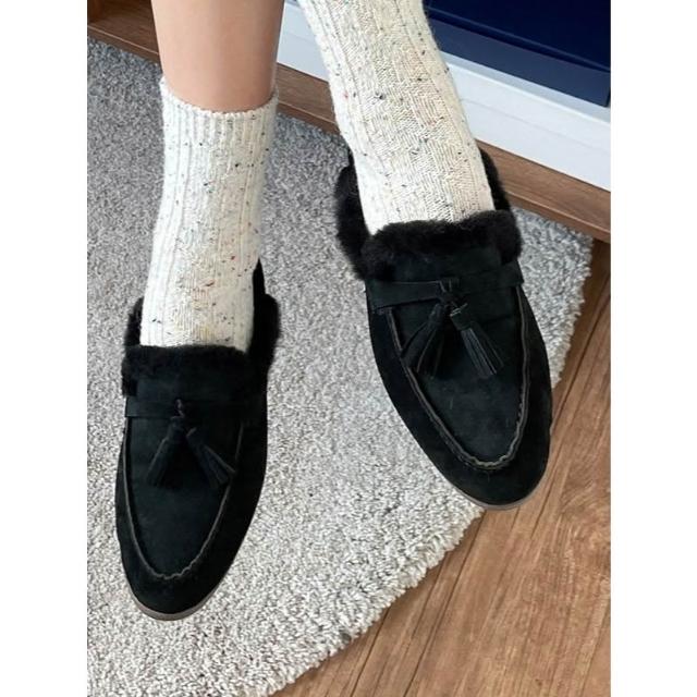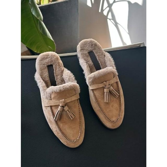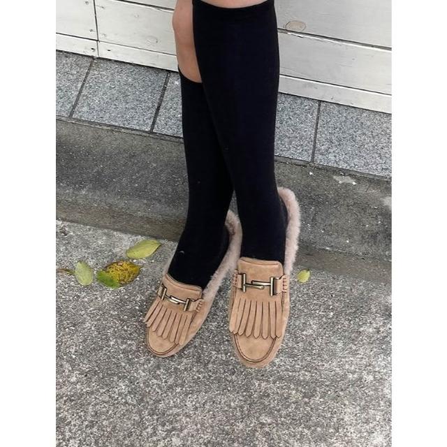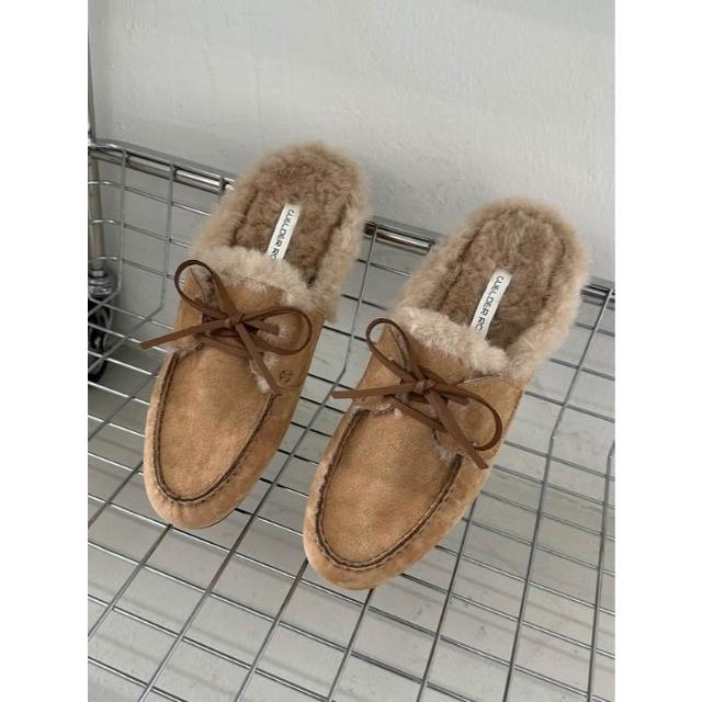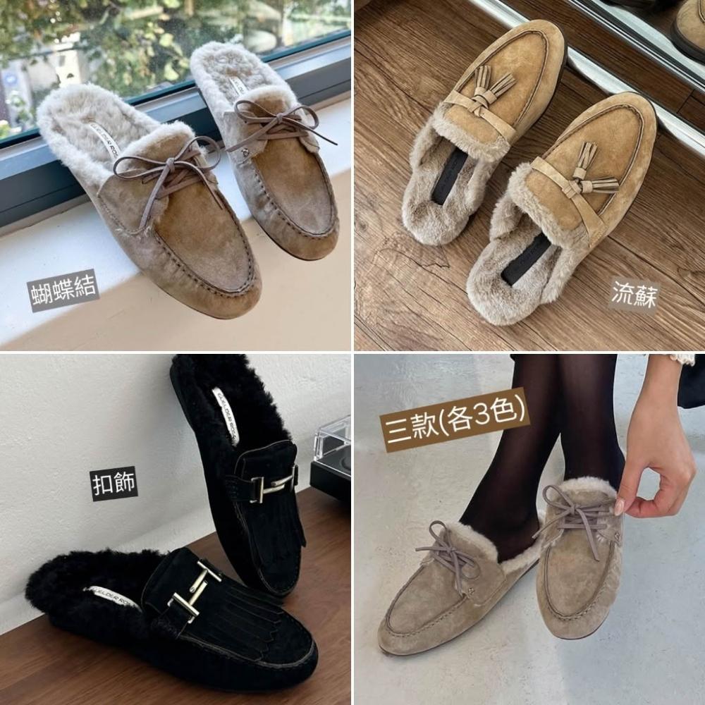 👞真皮麂皮內絨毛穆勒鞋・流蘇/蝴蝶結/扣飾三款造型保暖拖鞋 毛毛懶人鞋|正韓代購新款推薦・全館免運〃HITOMI〃