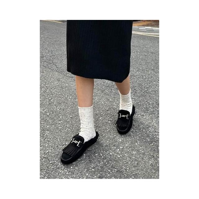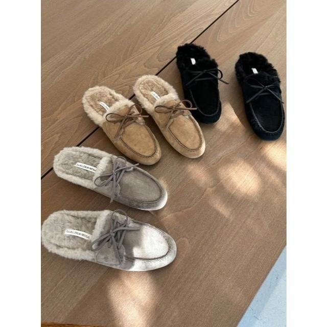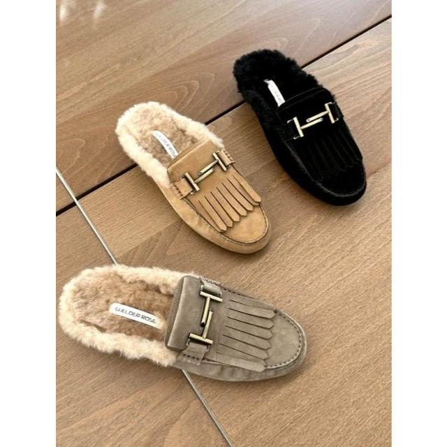 👞真皮麂皮內絨毛穆勒鞋・流蘇/蝴蝶結/扣飾三款造型保暖拖鞋 毛毛懶人鞋|正韓代購新款推薦・全館免運〃HITOMI〃
