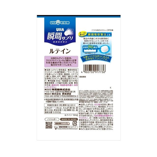 UHA 味覺糖瞬間溶化系列 葉黃素營養補充含片 藍莓口味 1g×60粒