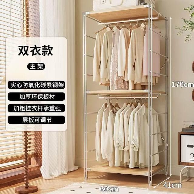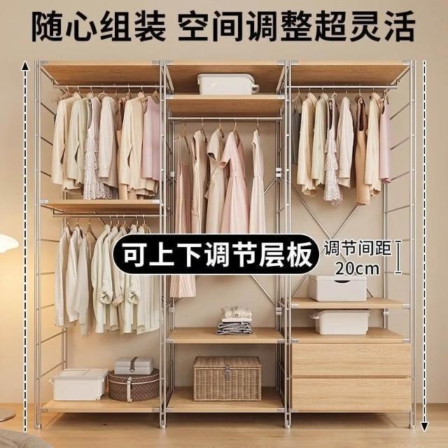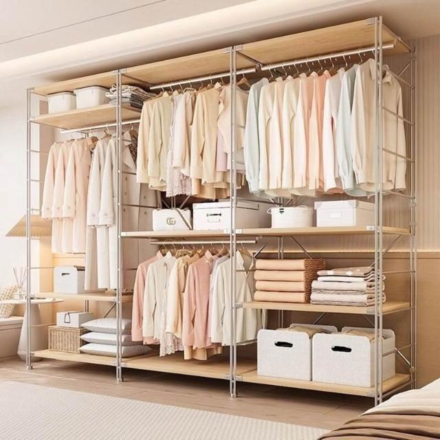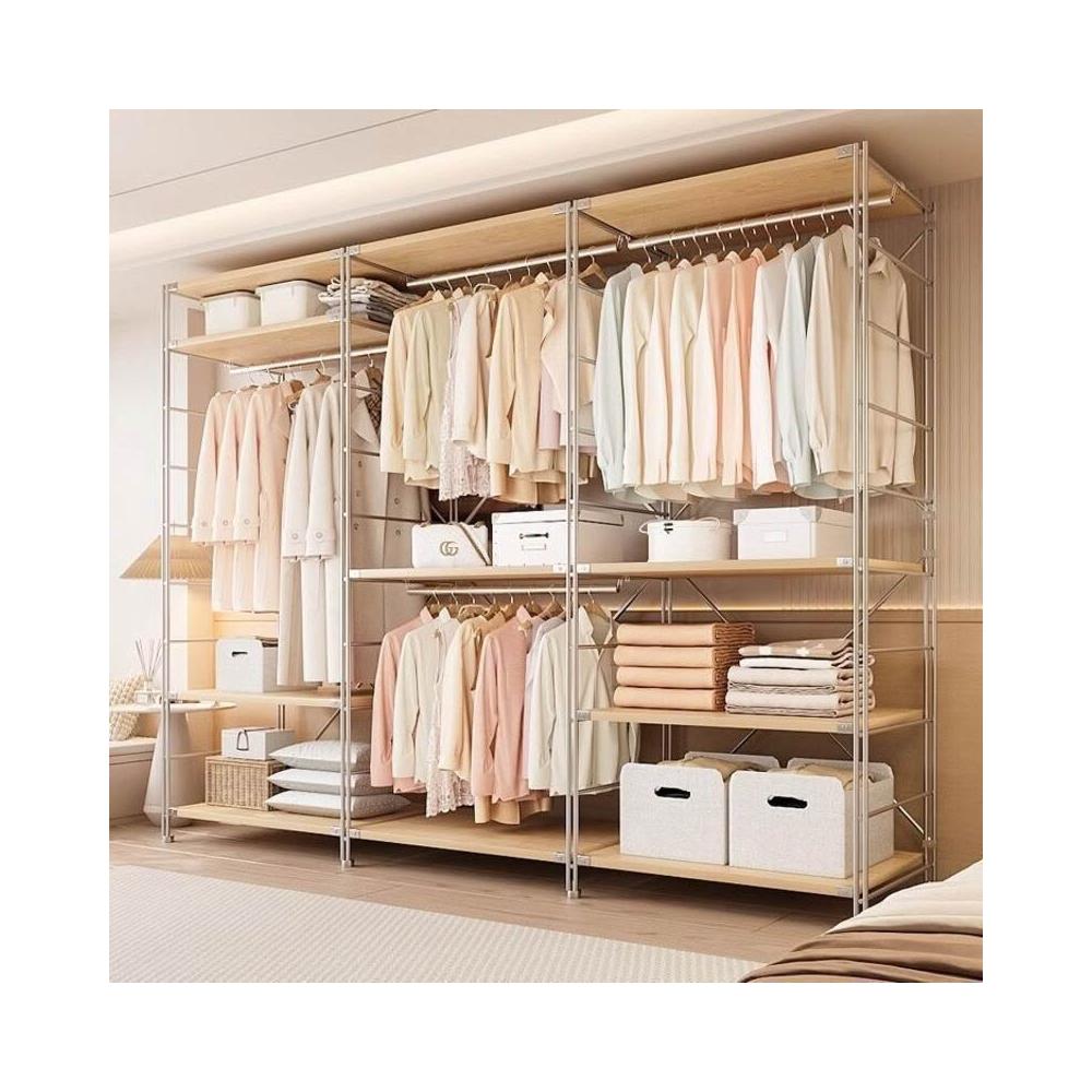 熱銷 節約空間 開放式衣櫃中古風掛衣架臥室落地步入式衣帽間架子組裝衣服置物架
