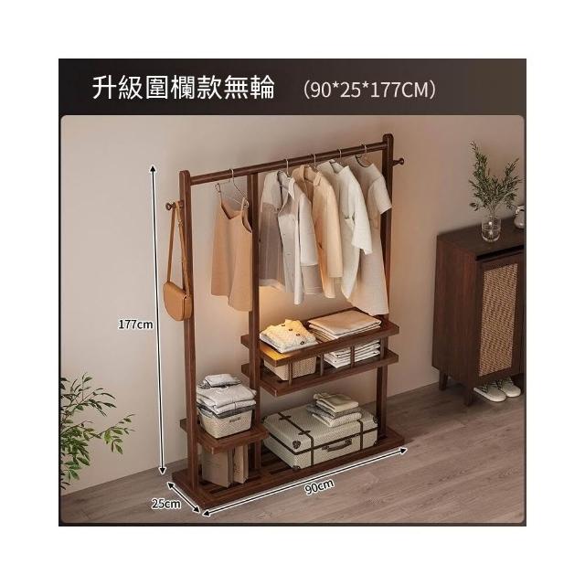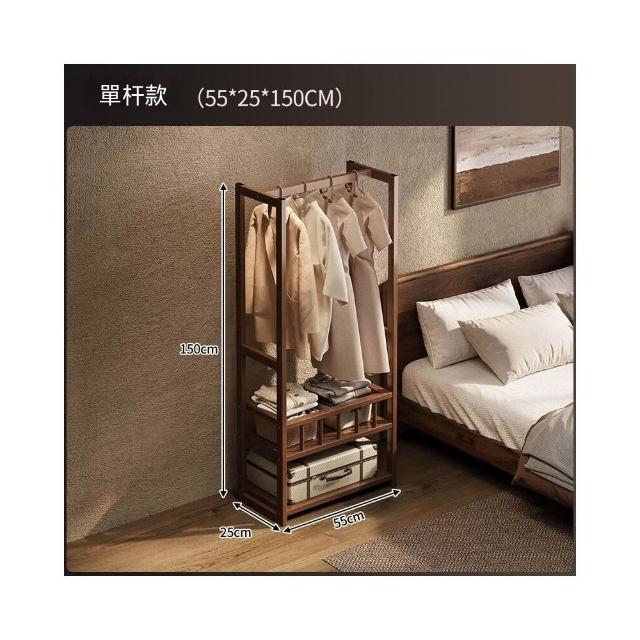 簡易衣櫃掛衣架置物一體落地家用立式收納架臥室掛衣服的衣帽架子 木架子
