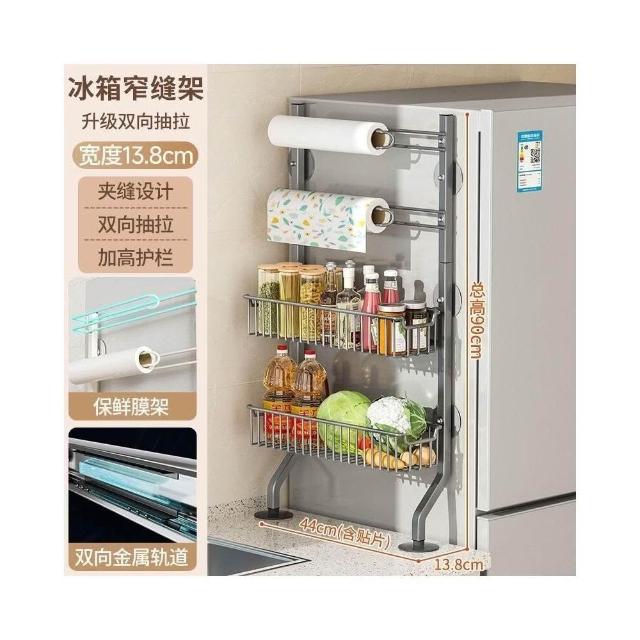 冰箱側收納置物架廚房調味料品免打孔靠墻夾縫架多層窄邊儲物收納 鐵架子