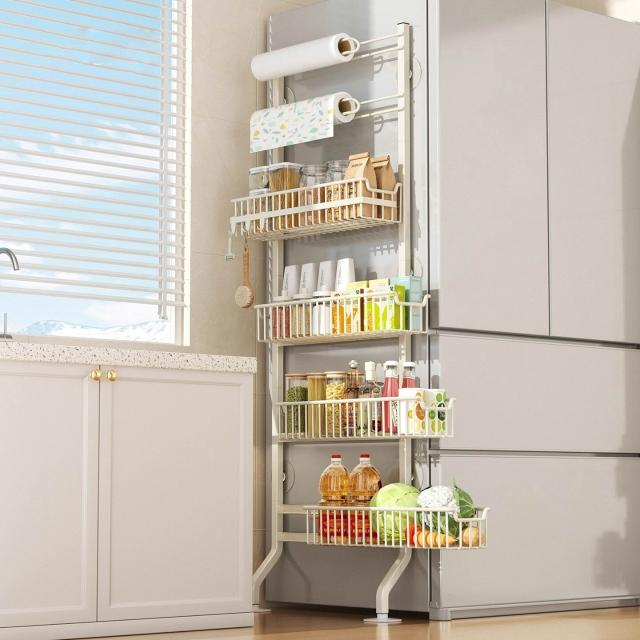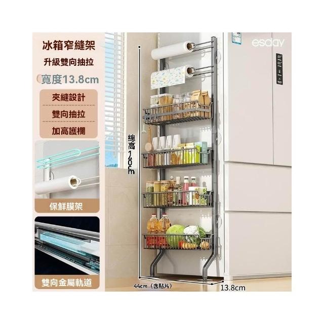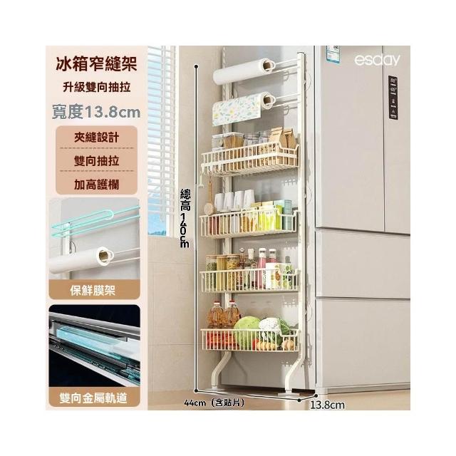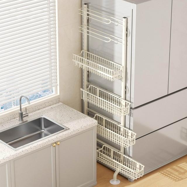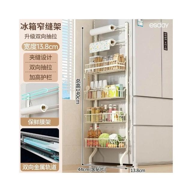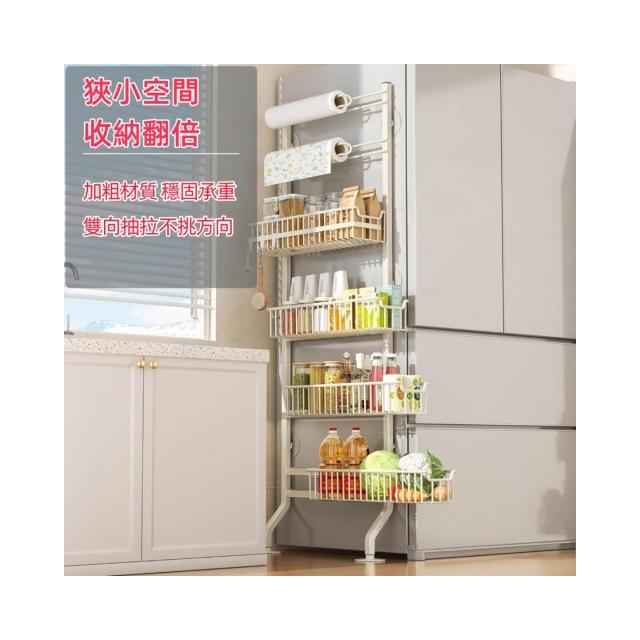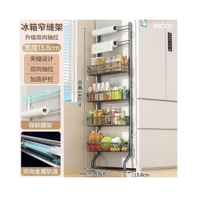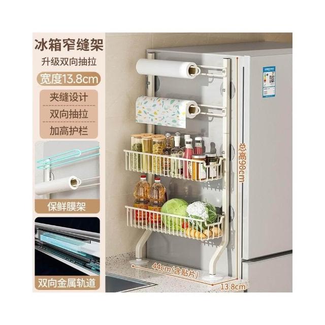 冰箱側收納置物架廚房調味料品免打孔靠墻夾縫架多層窄邊儲物收納 鐵架子