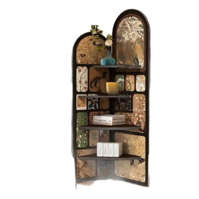 熱銷 節約空間 中古轉角櫃子床頭落地擺件裝飾書架客廳收納復古三角櫃墻角置物架