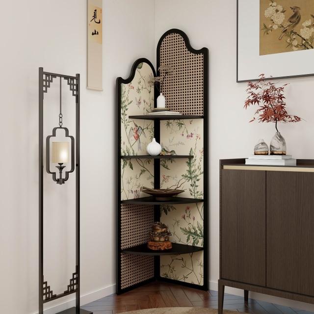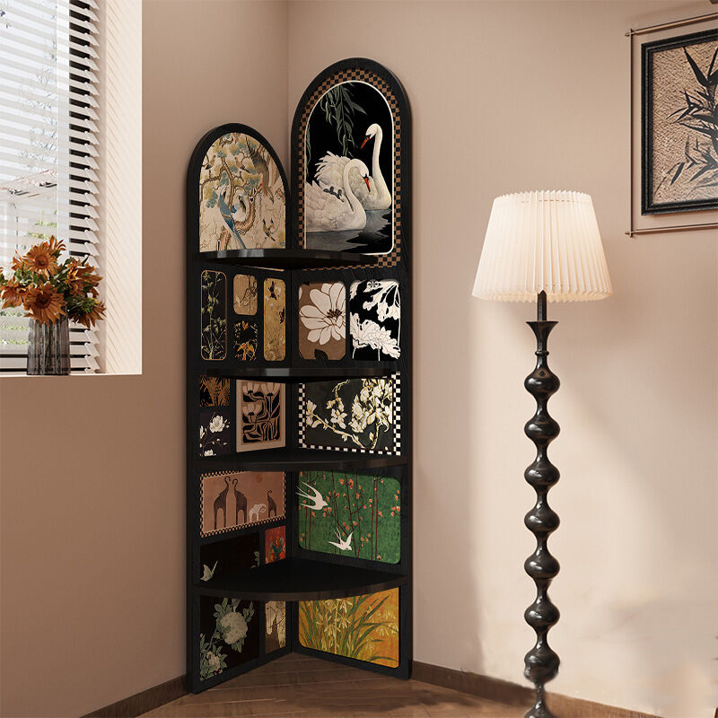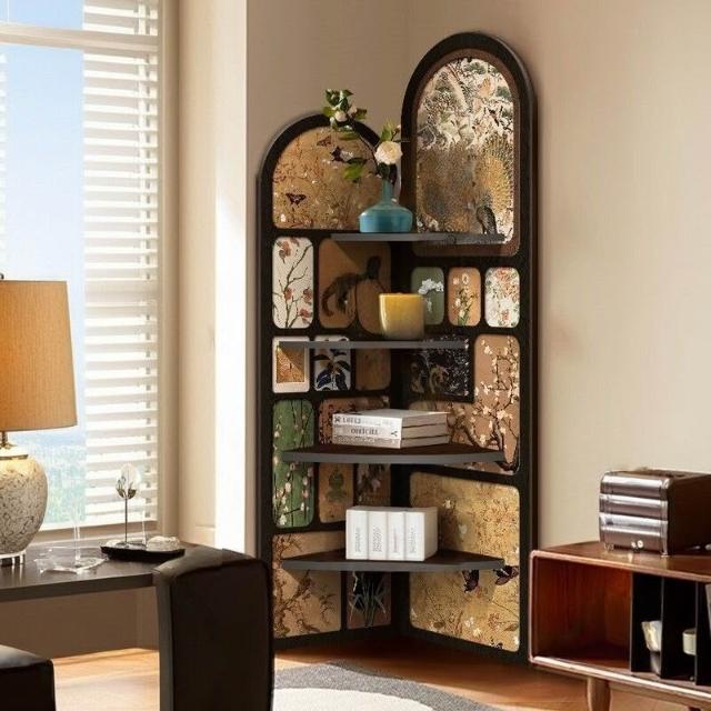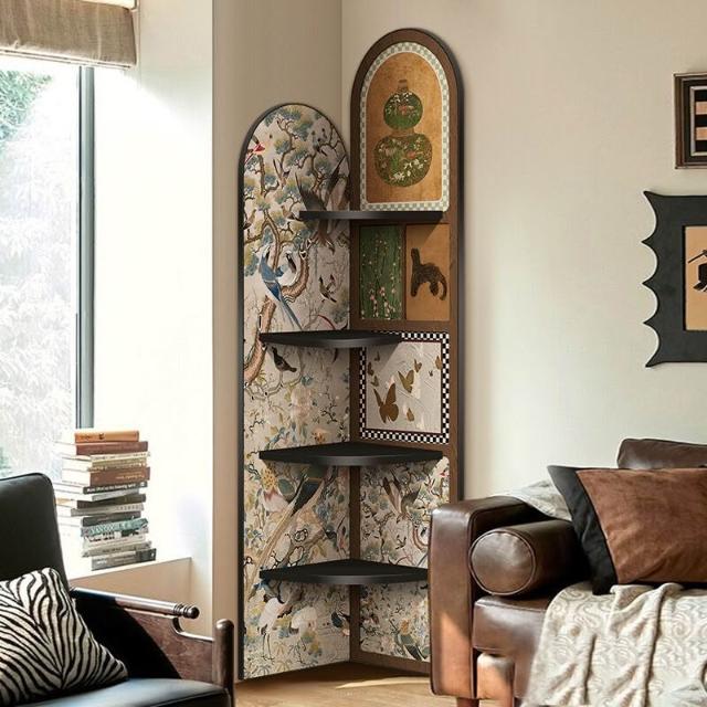 熱銷 節約空間 中古轉角櫃子床頭落地擺件裝飾書架客廳收納復古三角櫃墻角置物架
