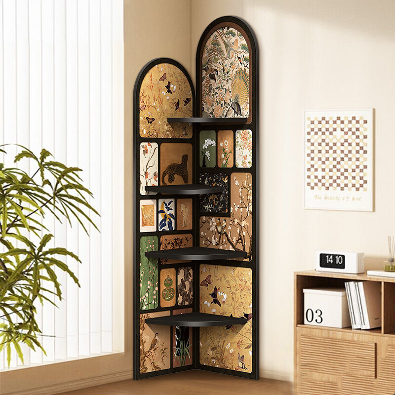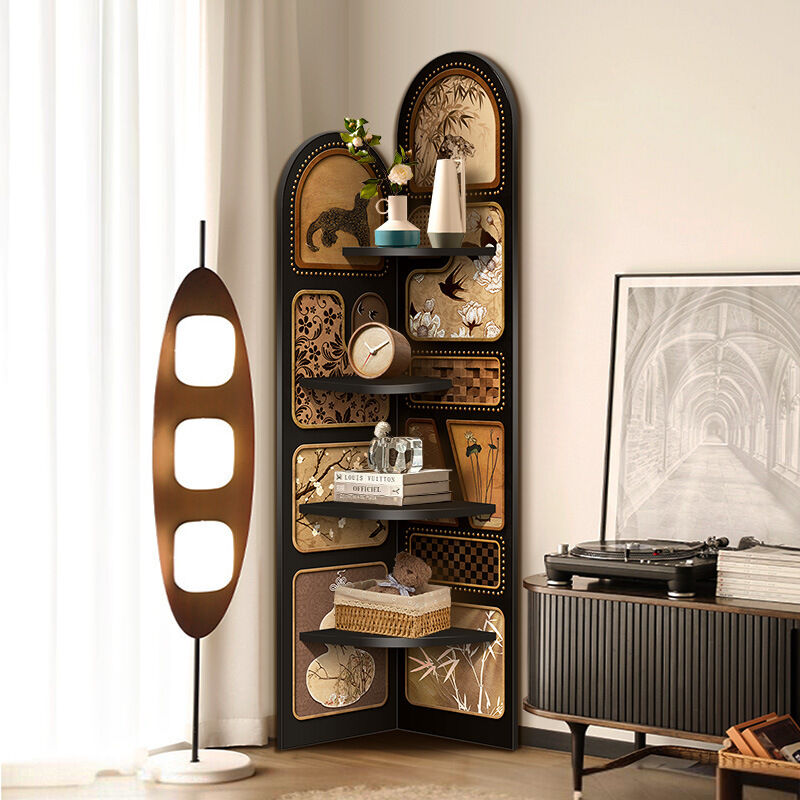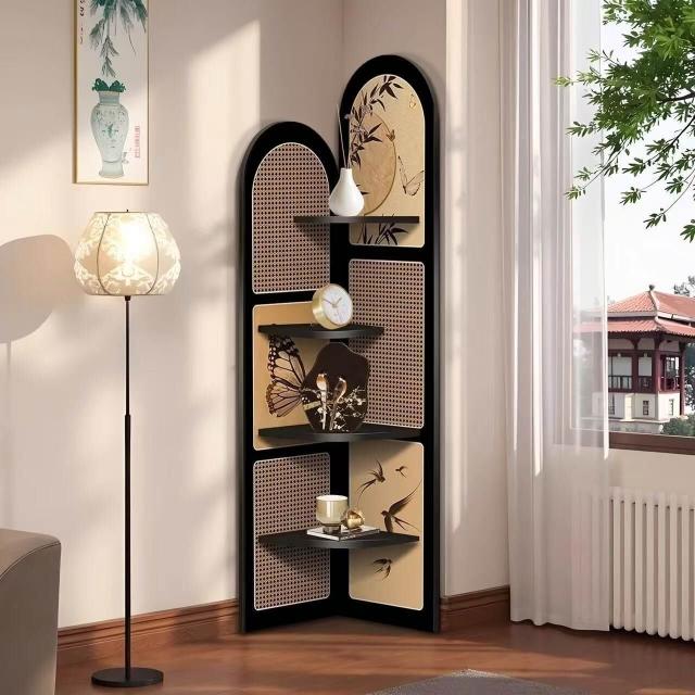 熱銷 節約空間 中古轉角櫃子床頭落地擺件裝飾書架客廳收納復古三角櫃墻角置物架