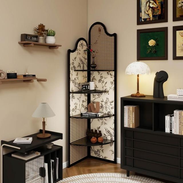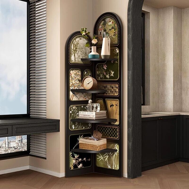 熱銷 節約空間 中古轉角櫃子床頭落地擺件裝飾書架客廳收納復古三角櫃墻角置物架
