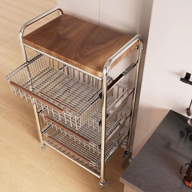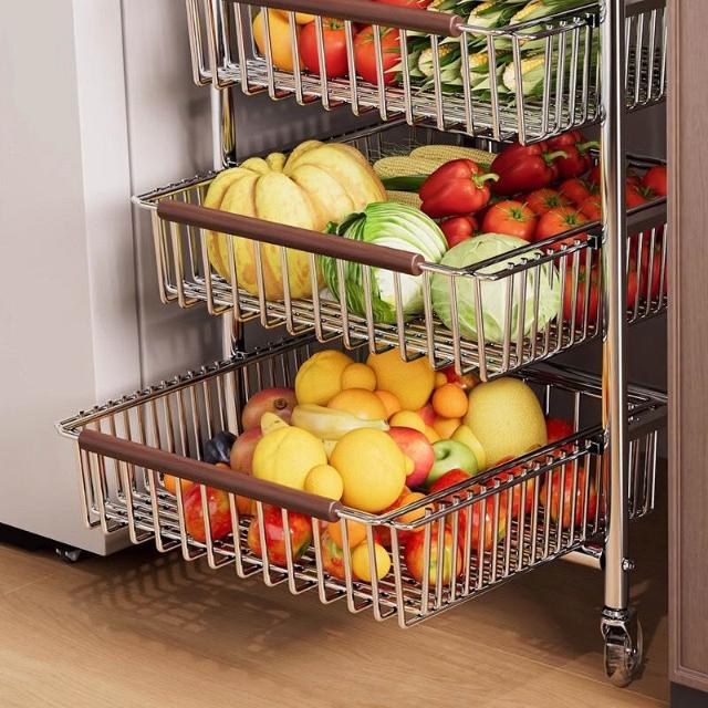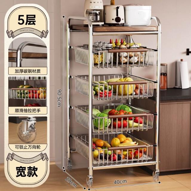 熱銷 節約空間 中古風廚房置物架小推車多功能夾縫多層果蔬菜籃零食可移動收納架