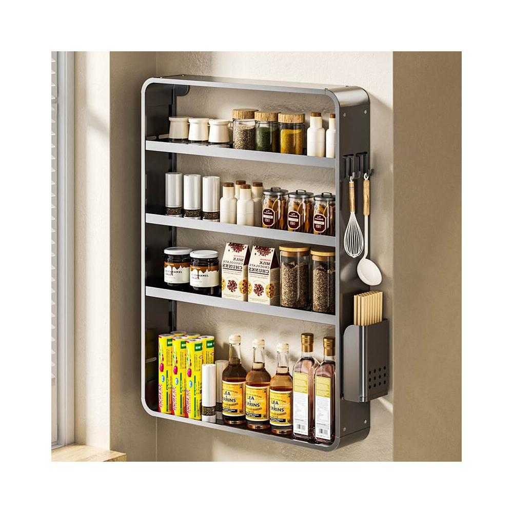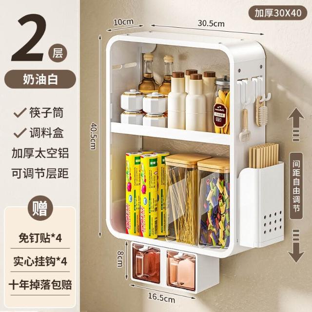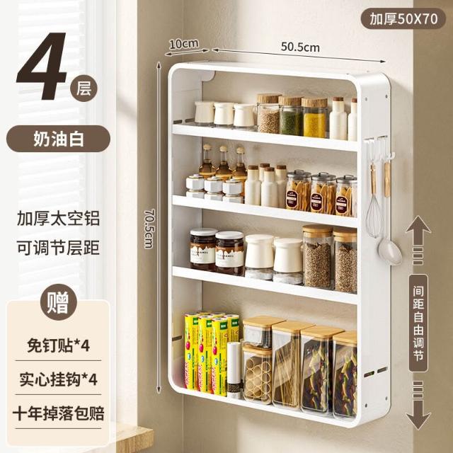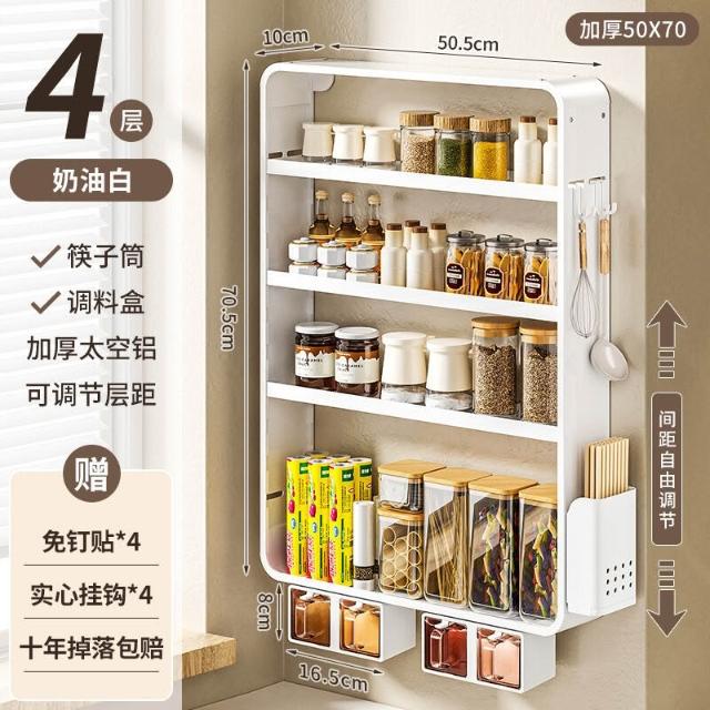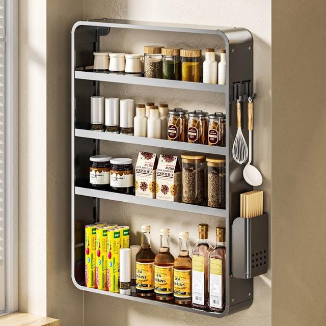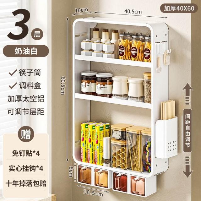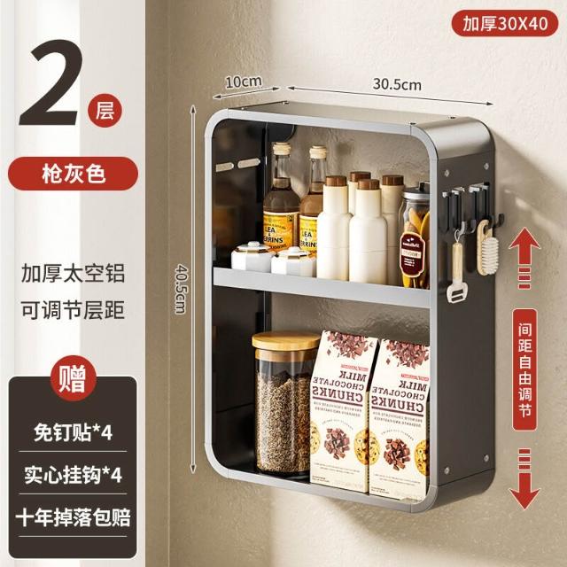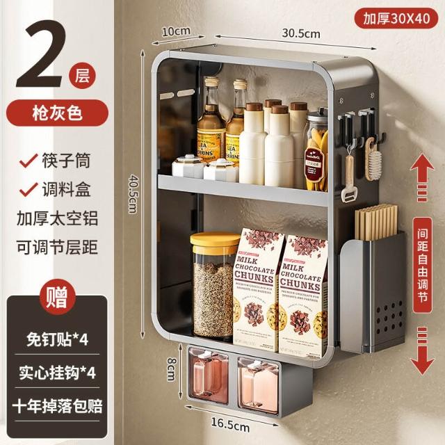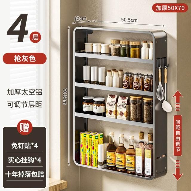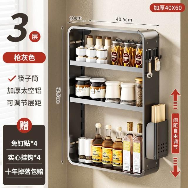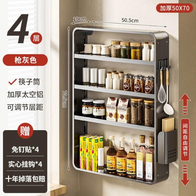 新品熱銷 廚房置物架免打孔多功能壁掛式調味料筷子醬油瓶用品收納太空鋁